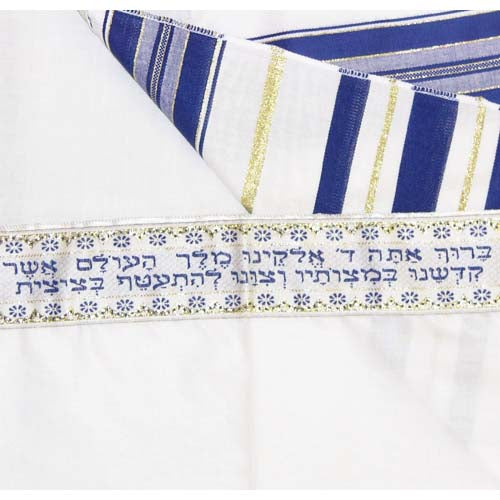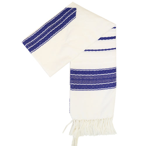 Handwoven Wool Prayer Shawl Set - White and Blue - 40" by Gabrieli