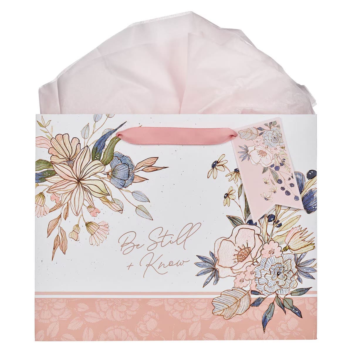 Be Still and Know Peach Blossom Large Landscape Gift Bag - Psalm 46:10