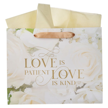 Love White Rose Large Landscape Gift Bag - 1 Corinthians 13:4