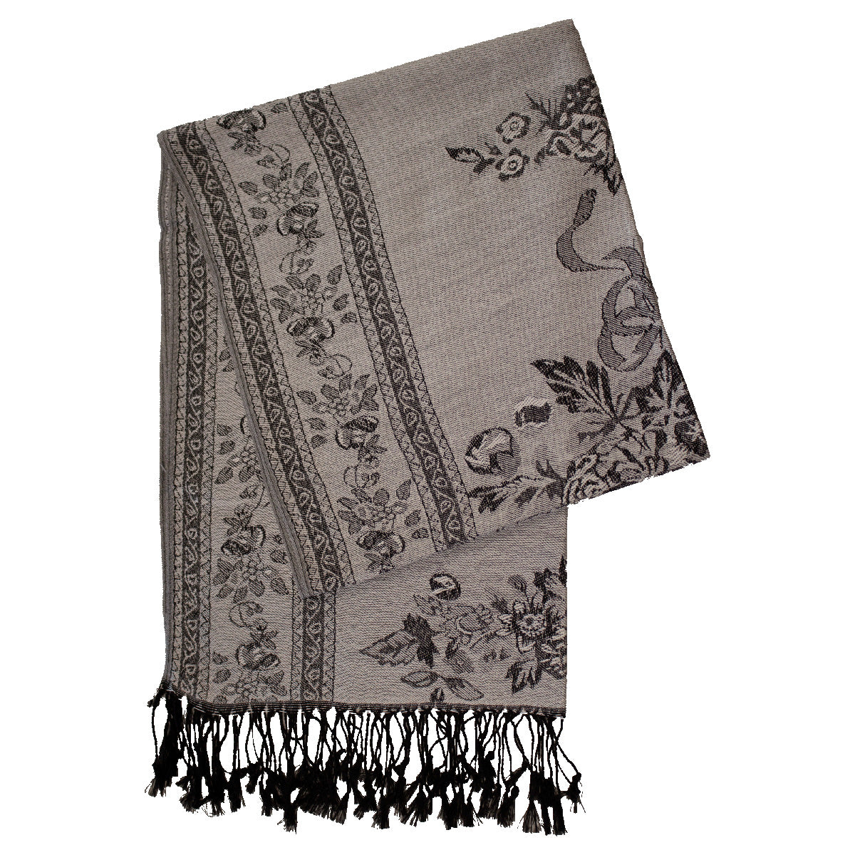 This elegant rose and floral pashmina scarf is available in a variety of colors. Adorned with a delicate pattern, it adds a touch of romance to any outfit. Crafted from luxurious pashmina fabric, it's soft and lightweight make it perfect for all seasons. Versatile and timeless, it's a must-have accessory for any wardrobe.