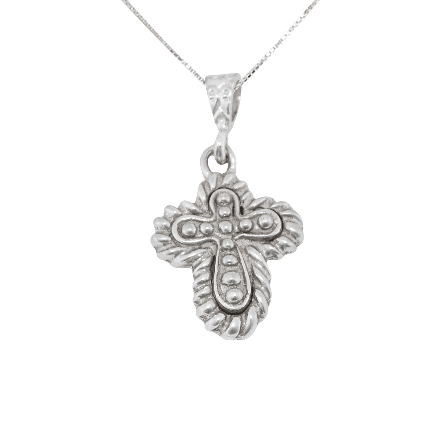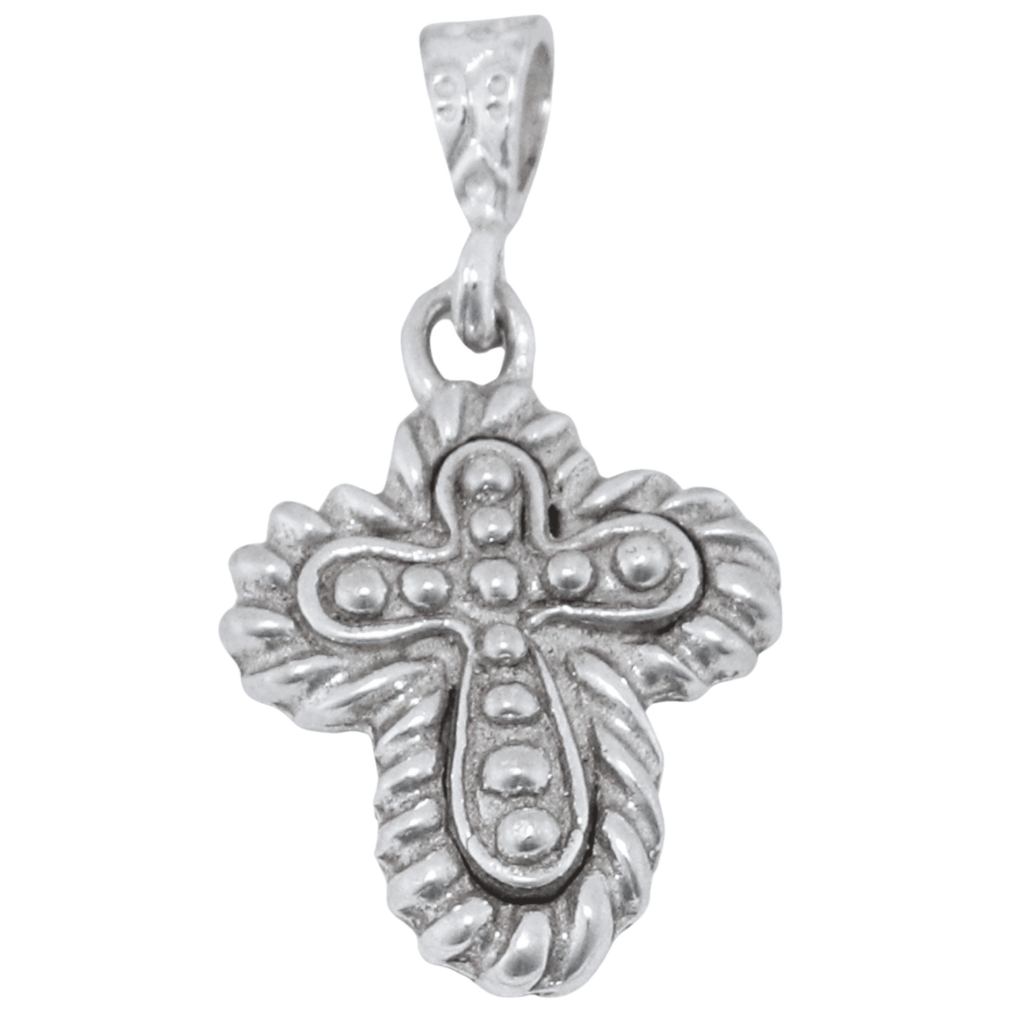 This small yet elegant sterling silver cross pendant is embellished with a radiant starburst pattern. The pendant's fine details create a play of light, highlighting its sleek silver surface. This pendant is stylish and carries both aesthetic and spiritual significance – a timeless piece that adds grace to any outfit!