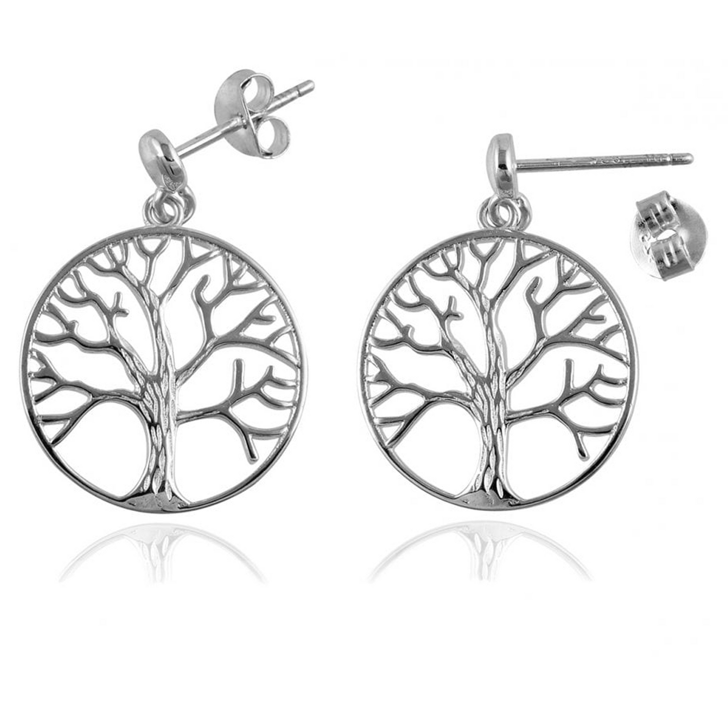 Discover the beauty of these delicate sterling silver earrings. Crafted with precision and meaning, they are perfectly sized for a child or anyone seeking a small and elegant accessory. The intricate design showcases a simple tree of life and a circular pendant, adding a touch of grace. Made from high-quality sterling silver, these earrings are versatile and ideal for any occasion.