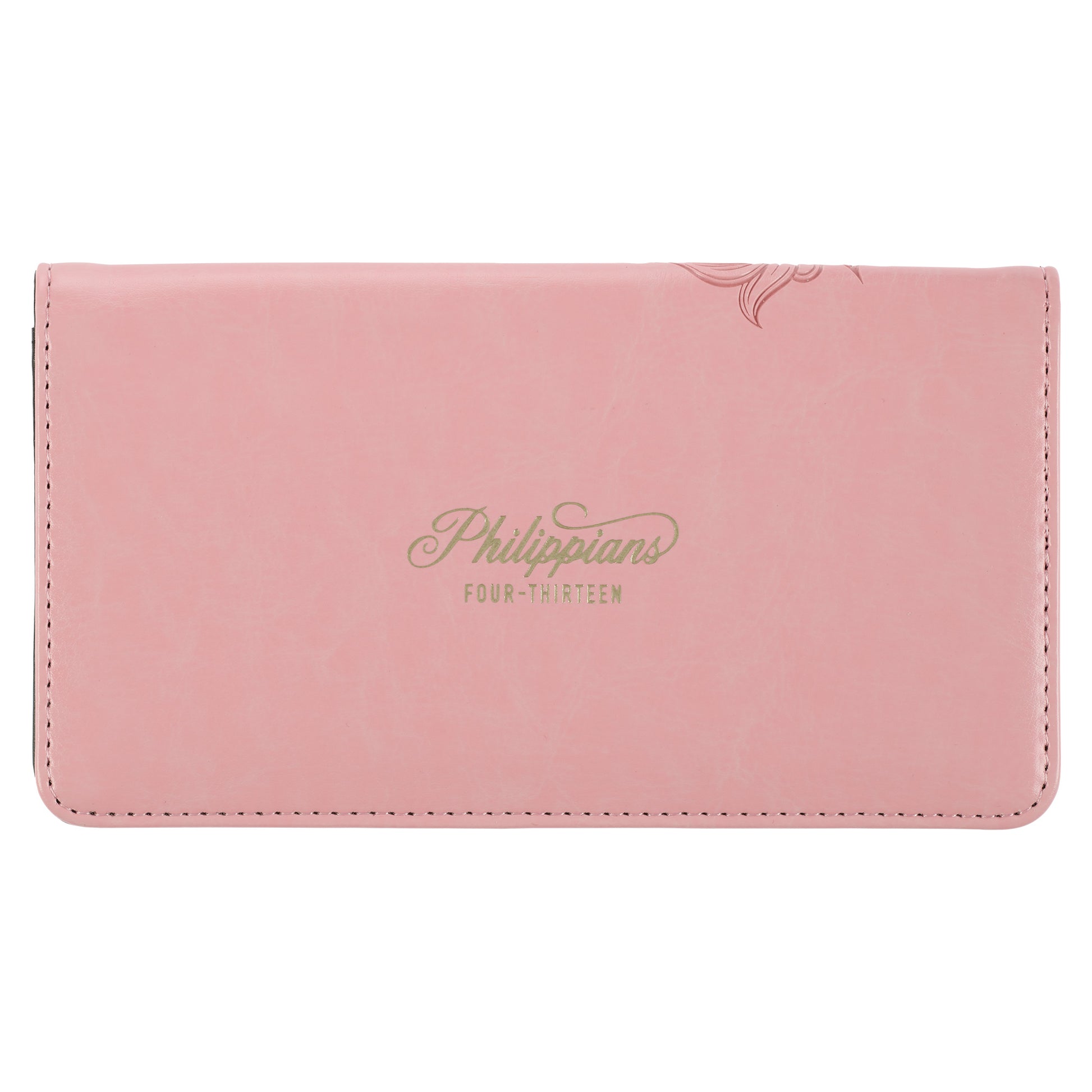 Through Christ Fluted Iris Pink Faux Leather Checkbook Wallet - Philippians 4:13