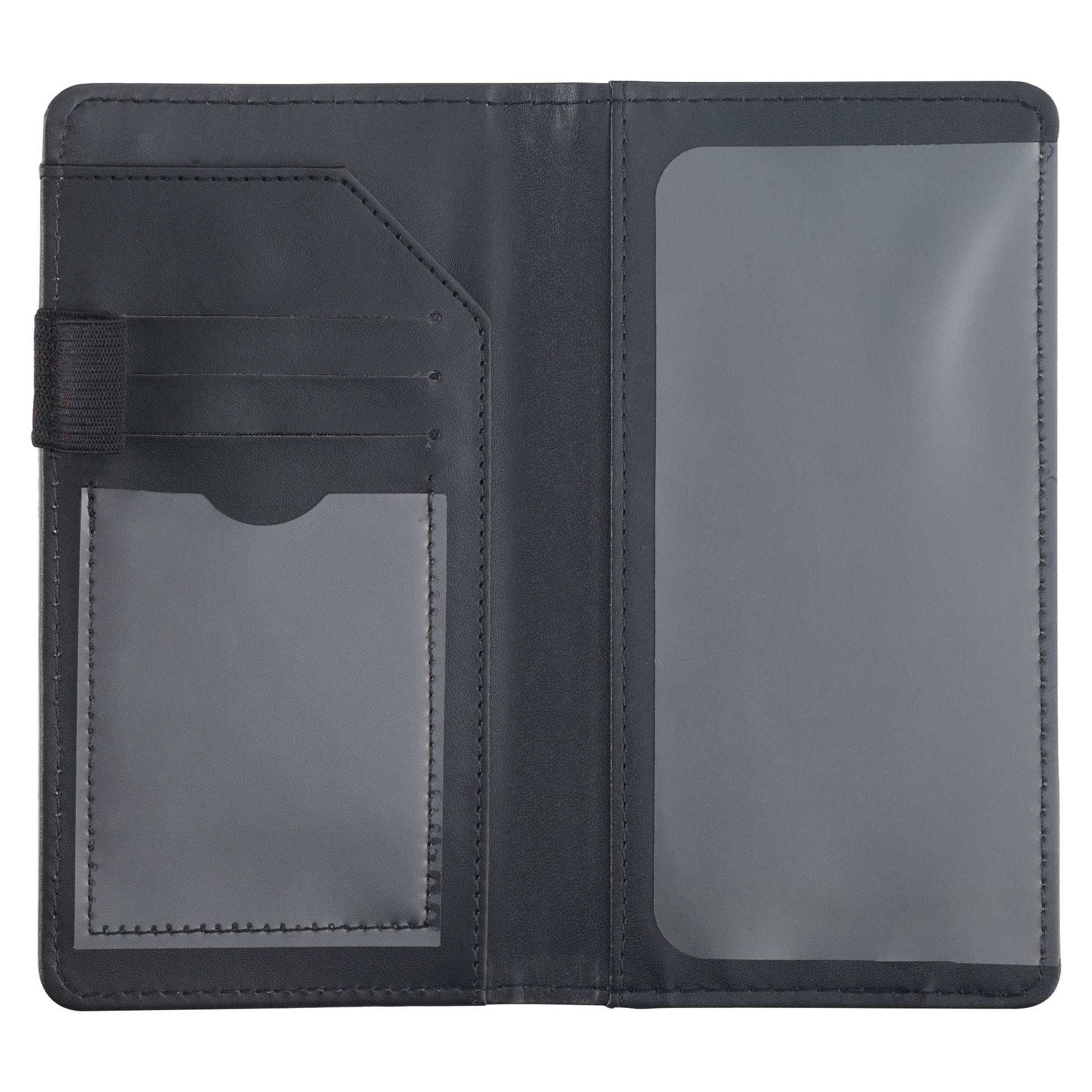 Strong topstitching along the edges of the checkbook wallet ensures that you will use it for many years. Inside the checkbook wallet is a slip pocket with three card sleeves for credit and debit cards, a sheer I.D. holder, and a pen holder. A plastic divider is included to accommodate duplicate checks.