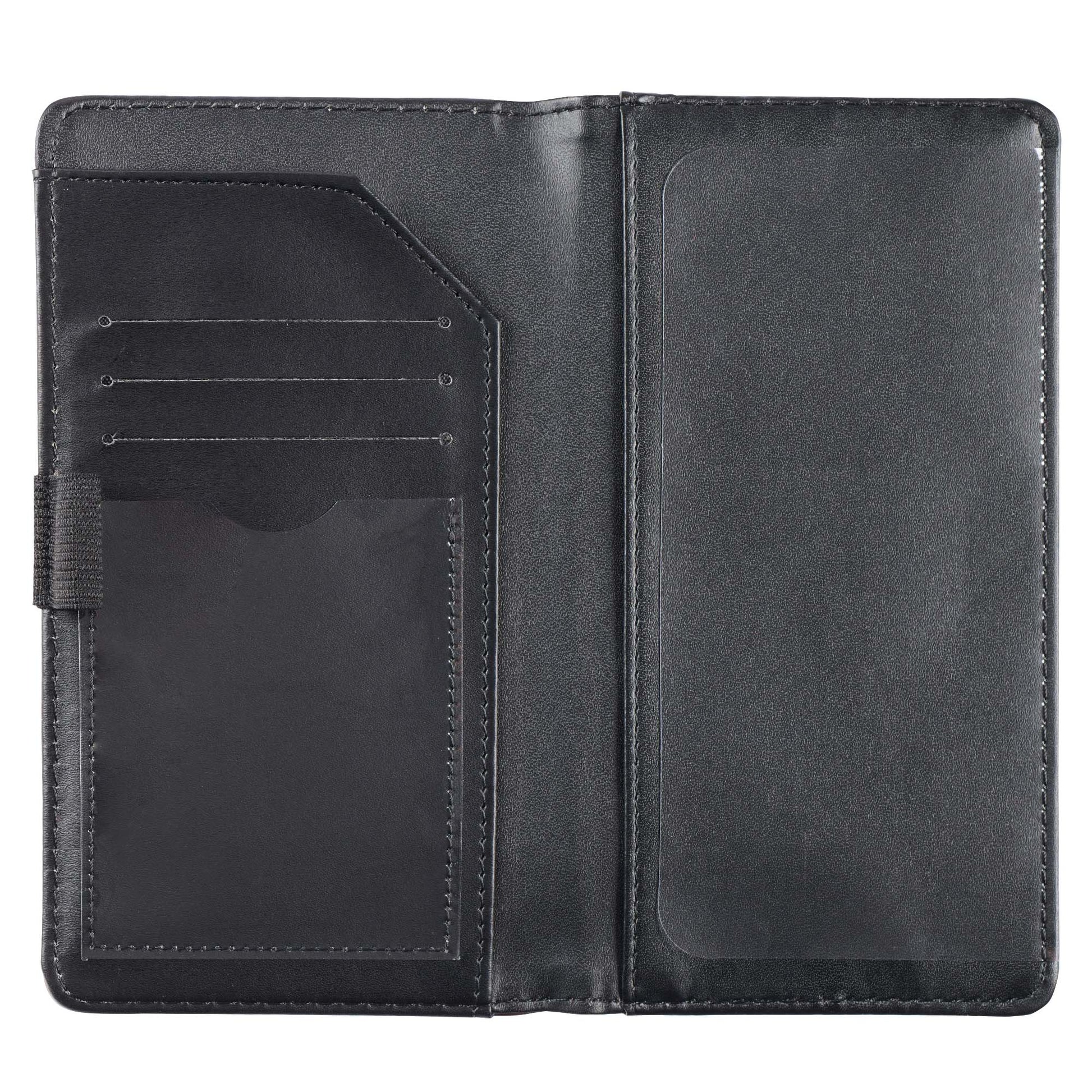 The rounded corners of the checkbook cover are topstitched along the edges to ensure long-lasting strength. The interior holds a slip pocket with three slots for credit cards, along with a sheer stitched I.D. holder and a useful pen-holder. Slip your checkbook into the slip pocket that features a plastic divider to prevent damage on further checks when writing a carbon copy.