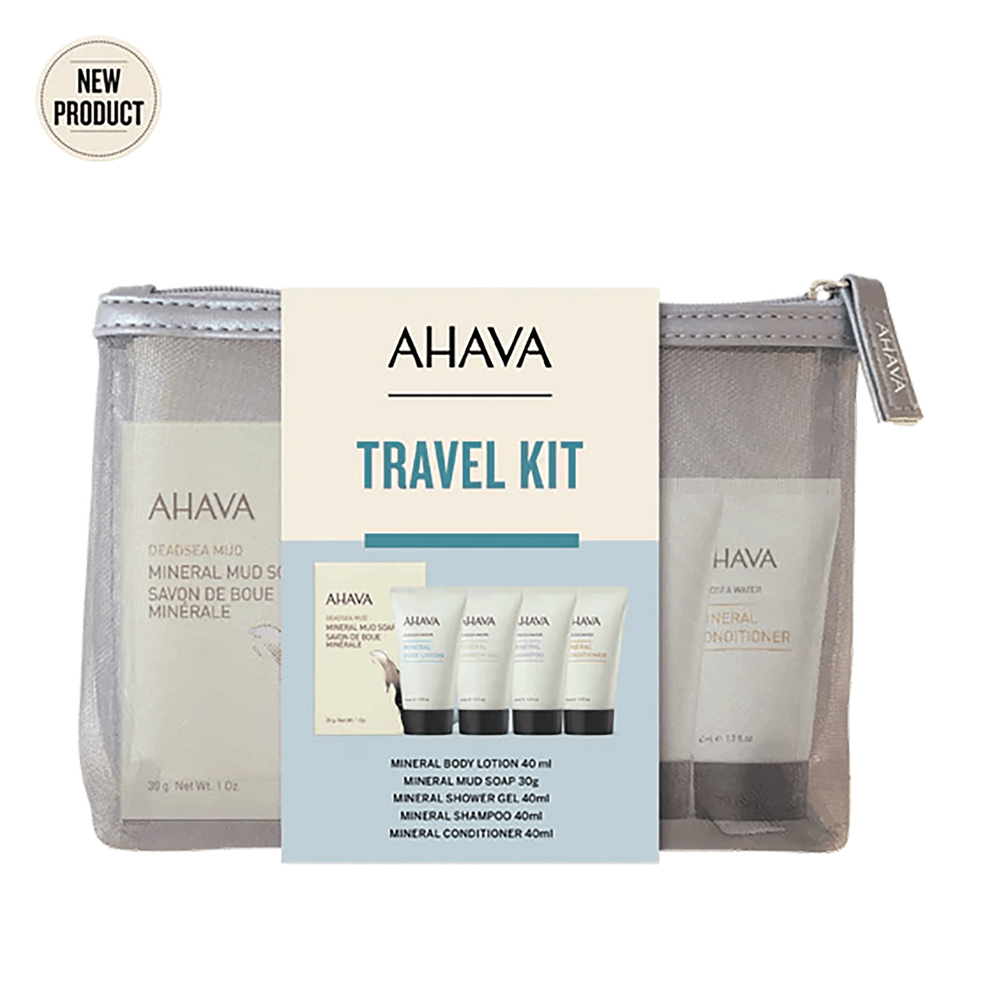 The Ahava Travel Kit is a convenient bundle of essential cosmetic products perfect for your travels. Contains special sizes of Mineral Body Lotion, Mineral Mud Soap, Mineral Shower Gel, Mineral Shampoo, and Mineral Conditioner in a chic, compact bag. Enjoy skin and hair nourishment no matter where you are. The travel kit is your ultimate companion for convenient, on-the-go skincare indulgence.