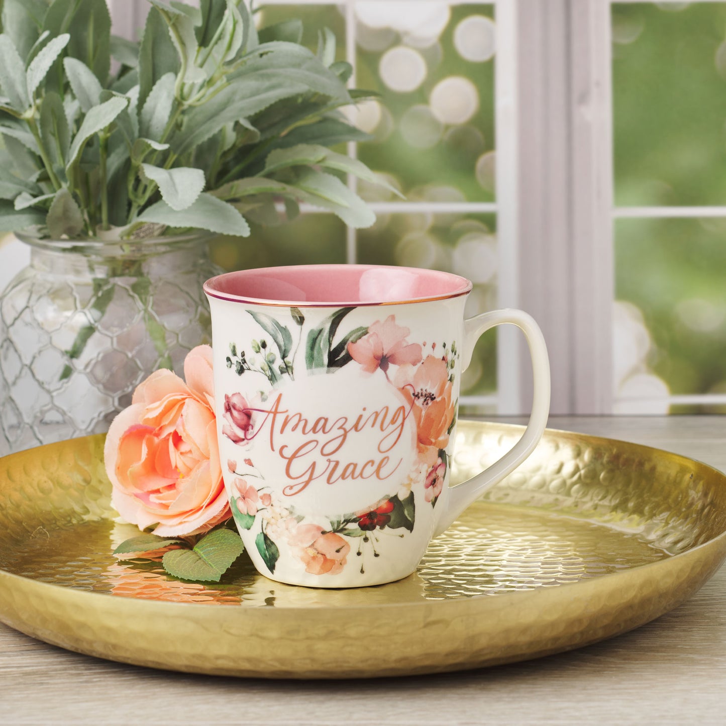 Amazing Grace Pink Floral Ceramic Coffee Mug
