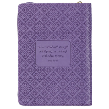 Strength & Dignity Hummingbird Purple Faux Leather Classic Journal with Zipper Closure - Proverbs 31:25
