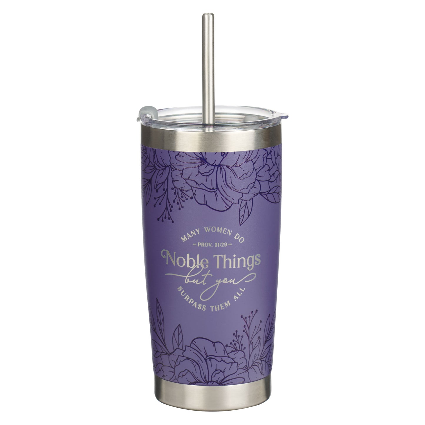Noble Things Lavender Floral Stainless Steel Tumbler - Proverbs 31:29