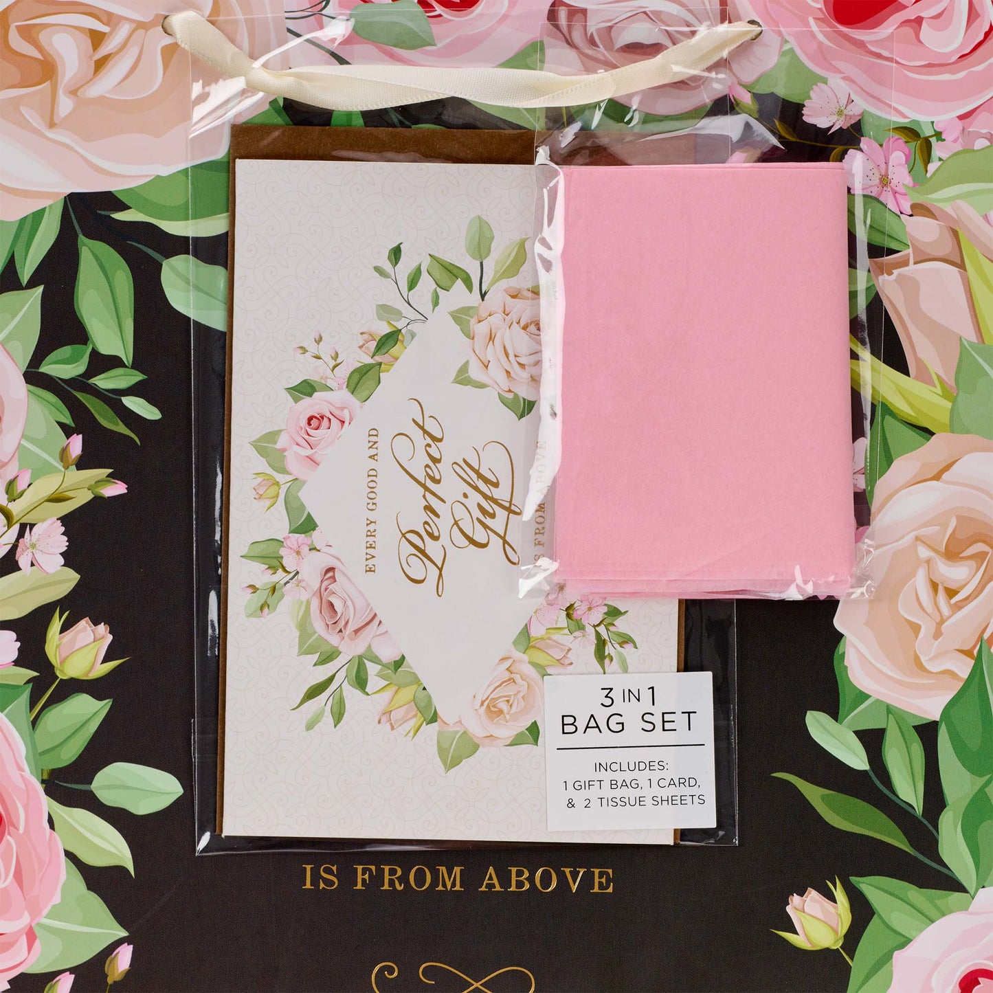 Perfect Gift Pink Rose Large Portrait Gift Bag with Card Set – James 1:17
