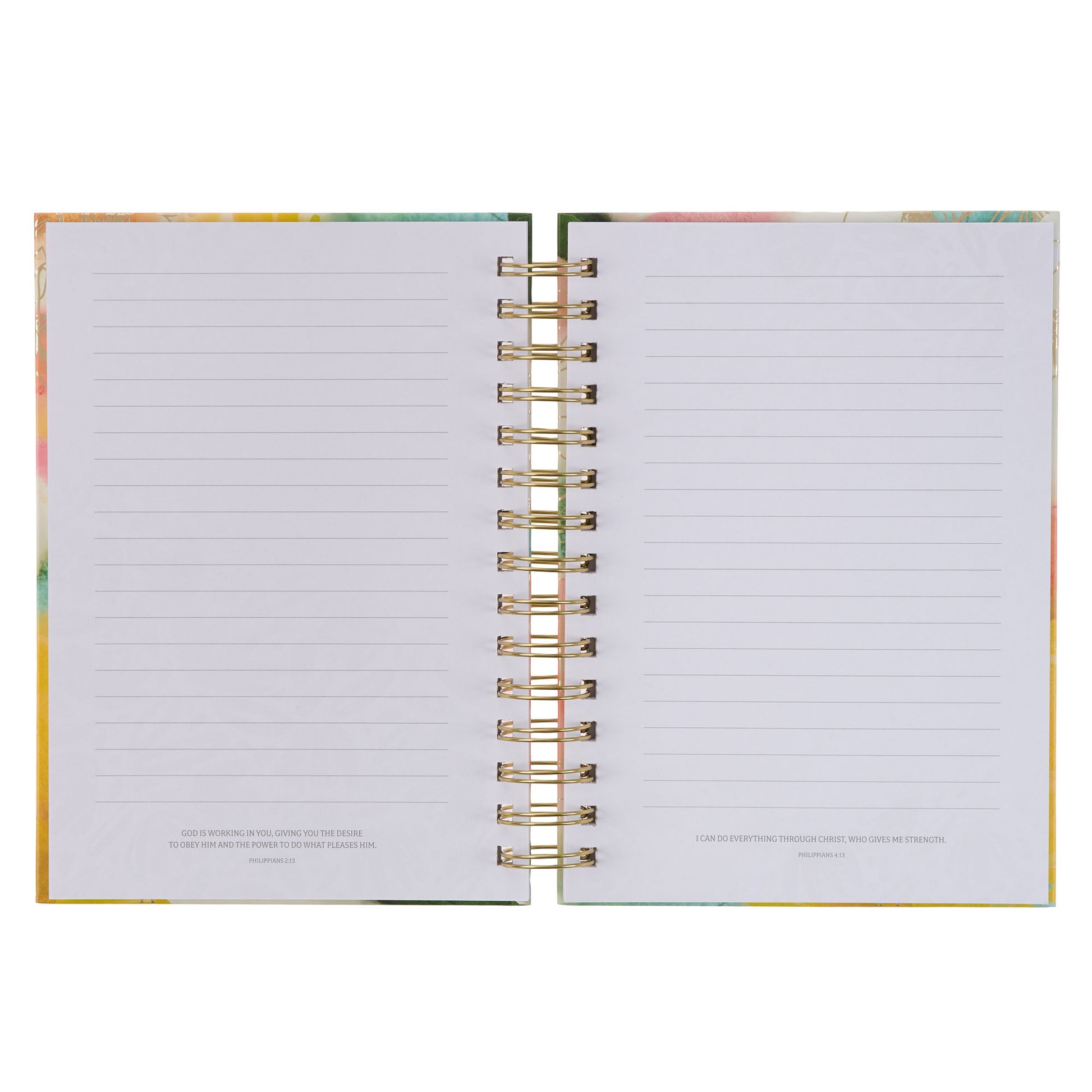 The Faithfulness Pastel Meadow Spiral Journal's bright feminine design and encouraging message will sustain you as you note your thoughts and prayers during your devotional time.