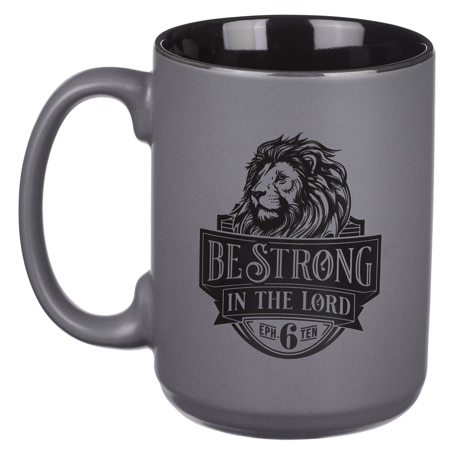 Be Strong Gray Lion Ceramic Coffee Mug - Ephesians 6:10