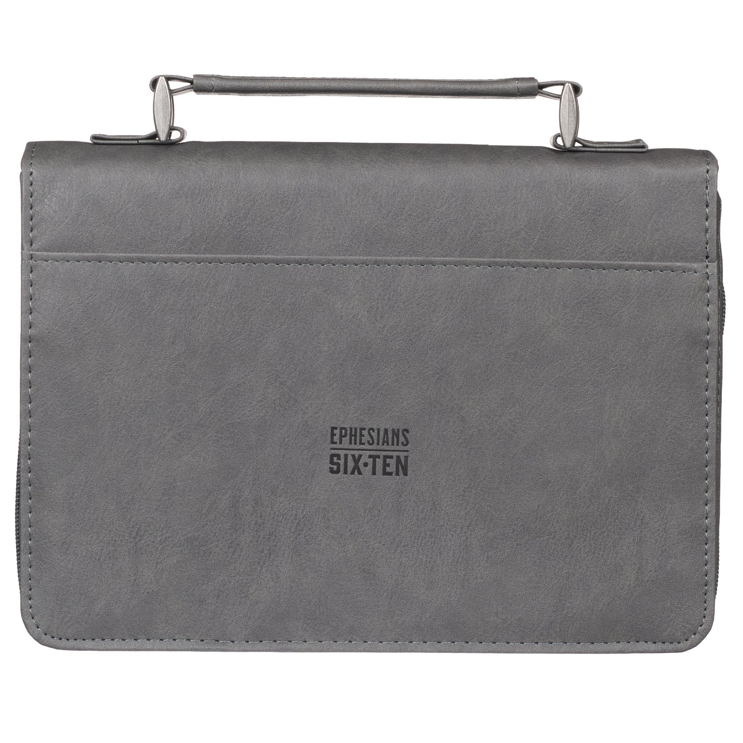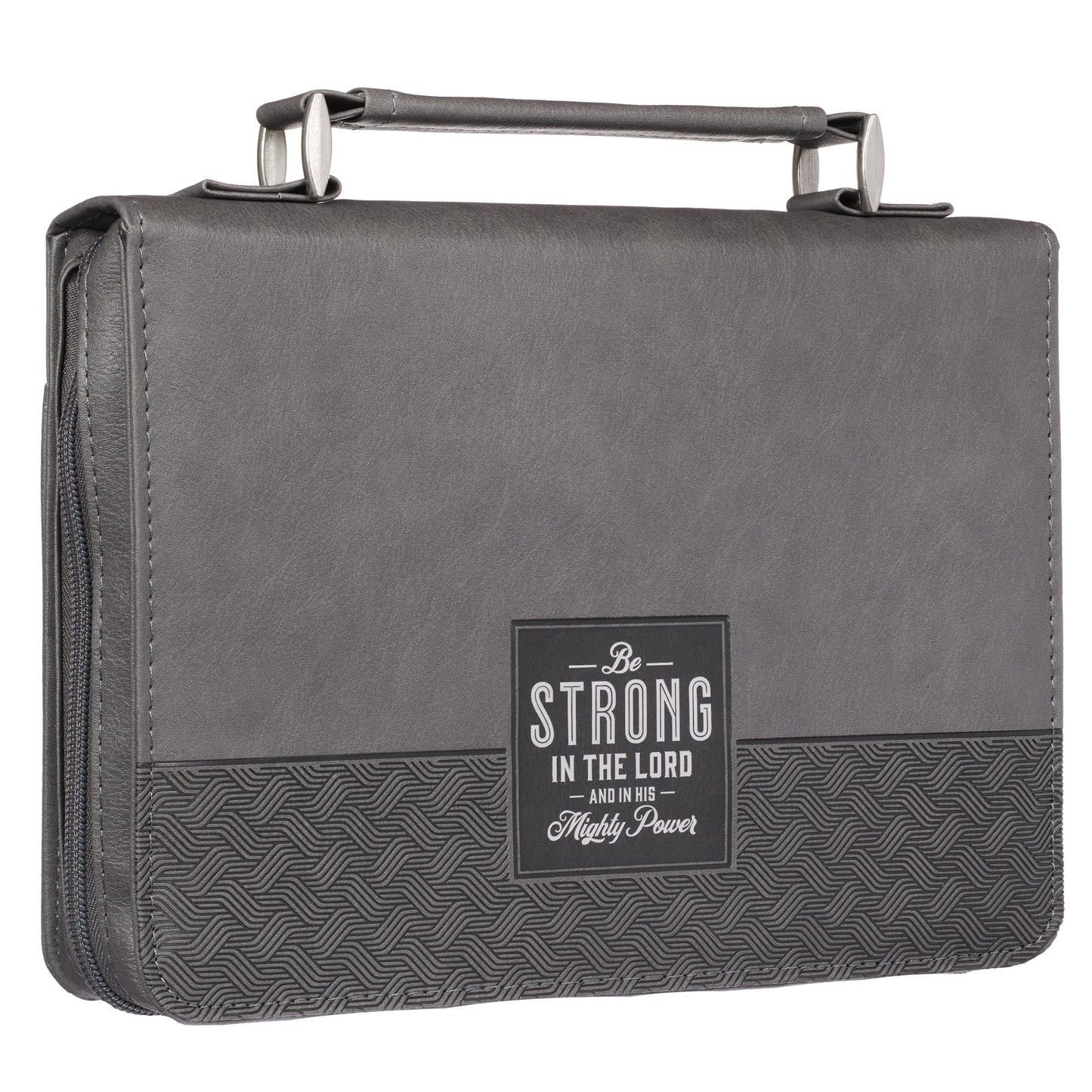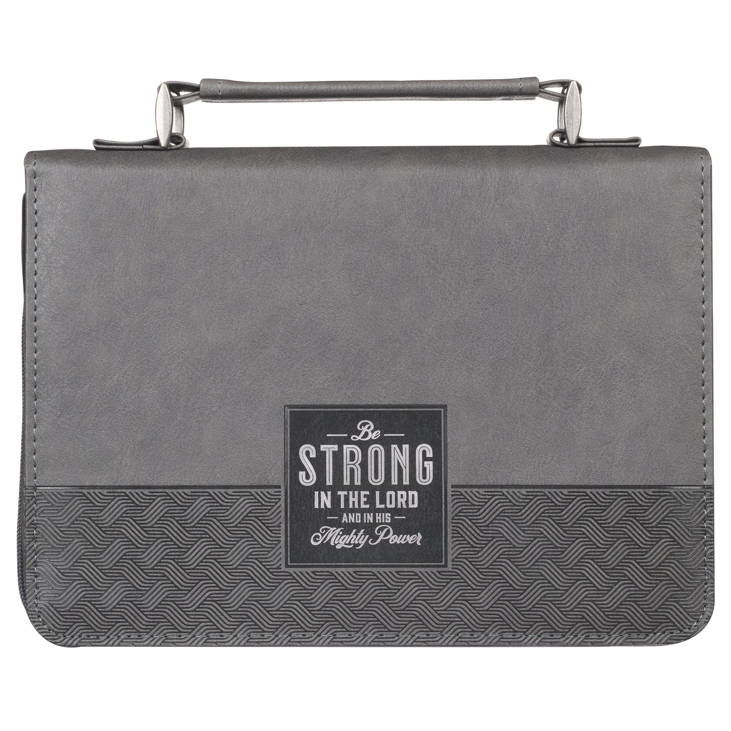 Be Strong in the Lord Gray and Black Faux Leather Classic Bible Cover - Ephesians 6:10
