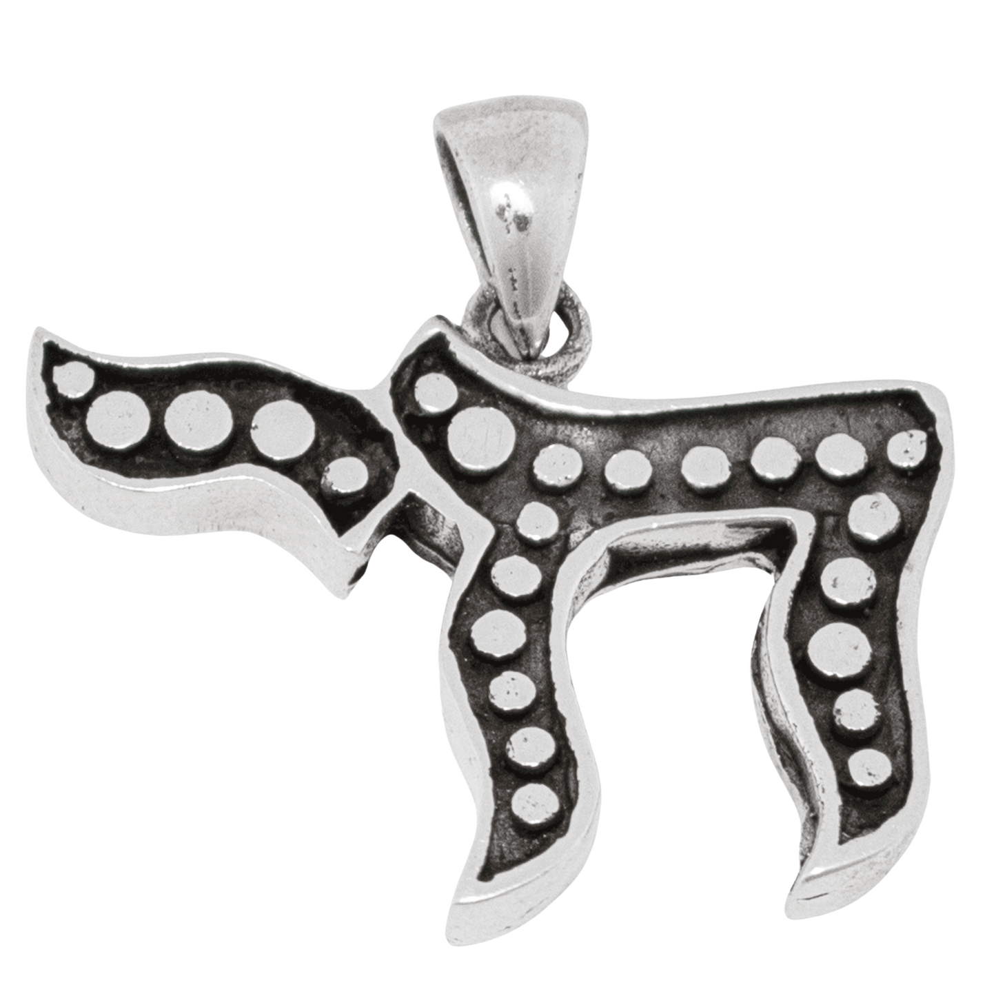 Imported from and made in the Holy Land of Israel, this Silver and Black Beaded Chai Pendant in wonderfully unique. Can be used with a variety of chains and is a perfect addition to your collection.