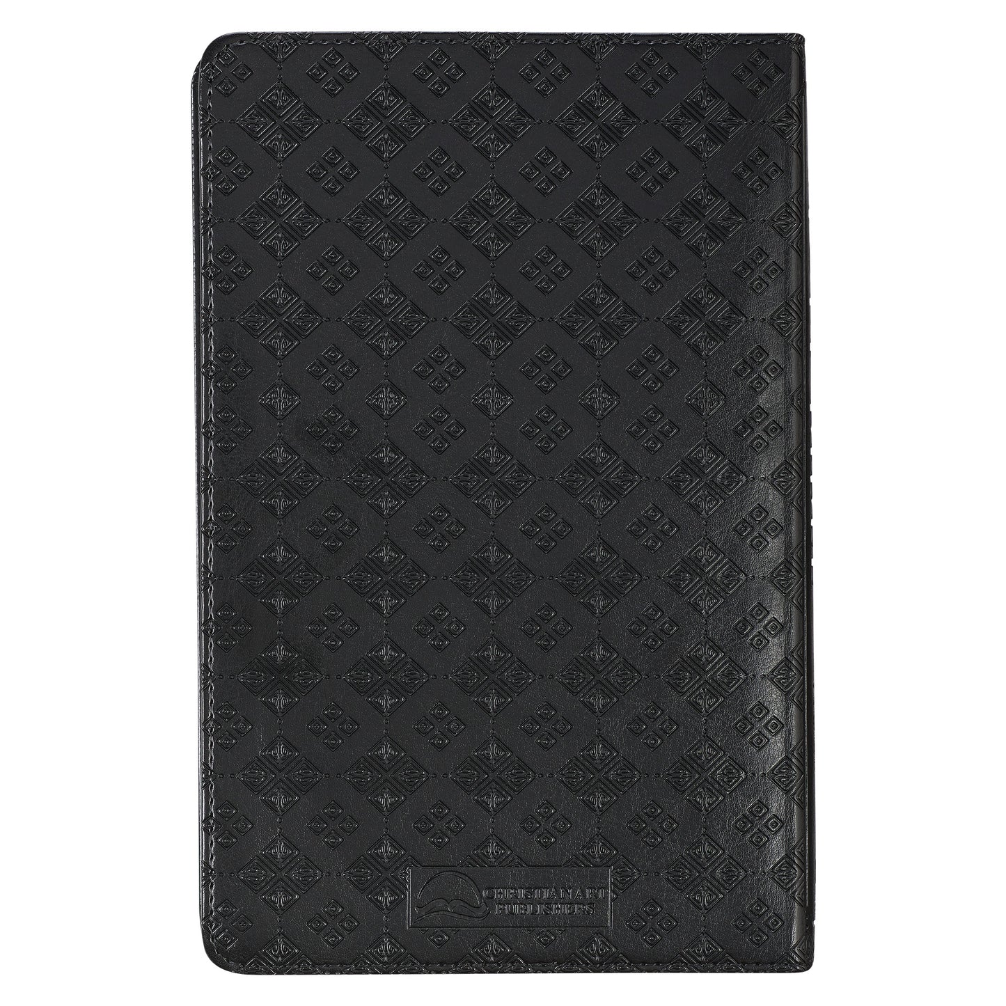 The glossy cover of the Black Faux Leather King James Version Deluxe Gift Bible with Thumb Index pays homage to an age-old version of the Bible with its beautiful poetic language.