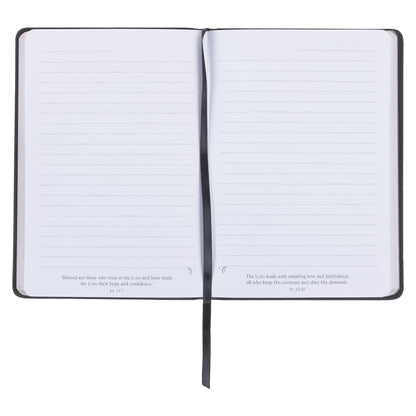 Journal the stress of the day away on the pages of the Bless You and Keep You Black Faux Leather Classic Journal.