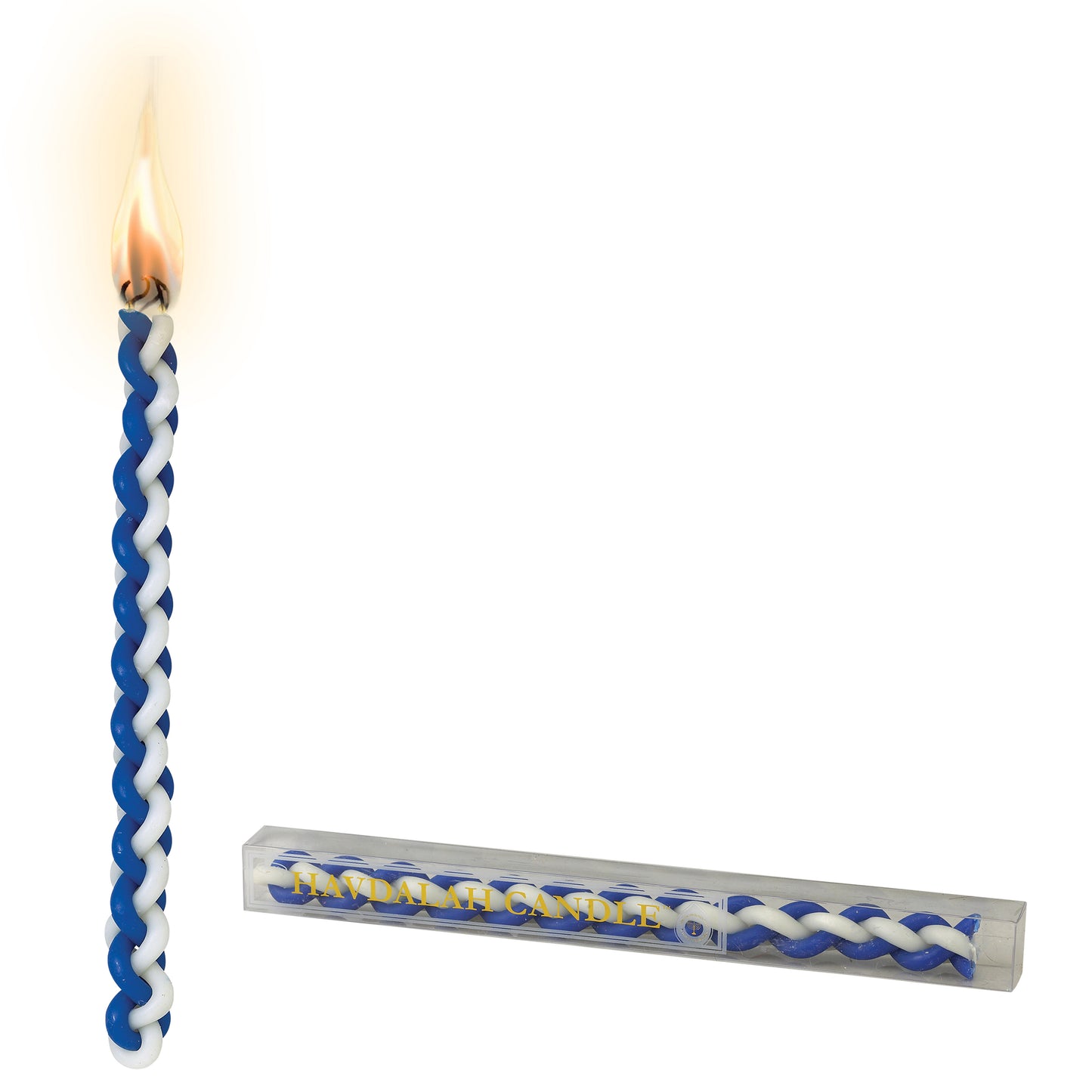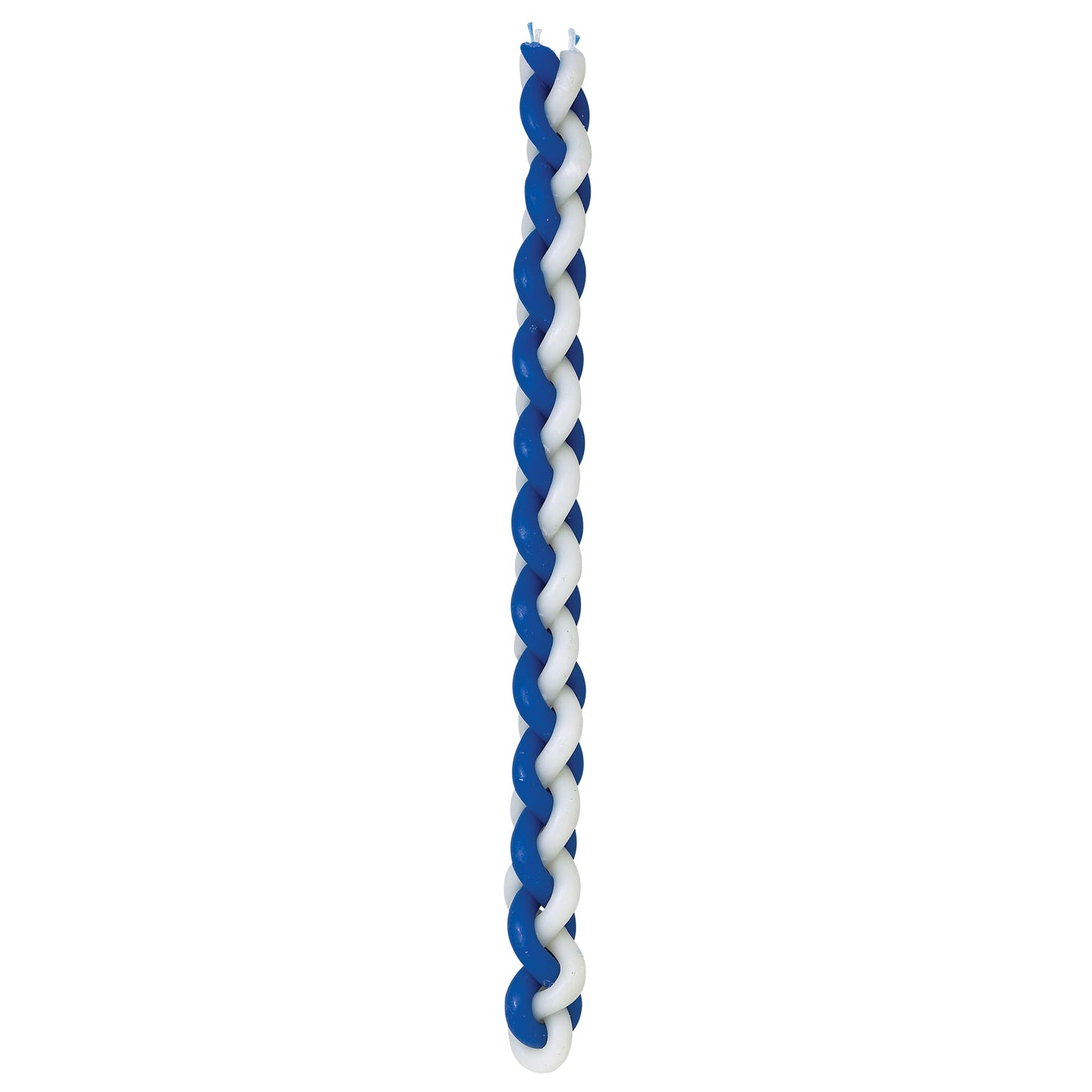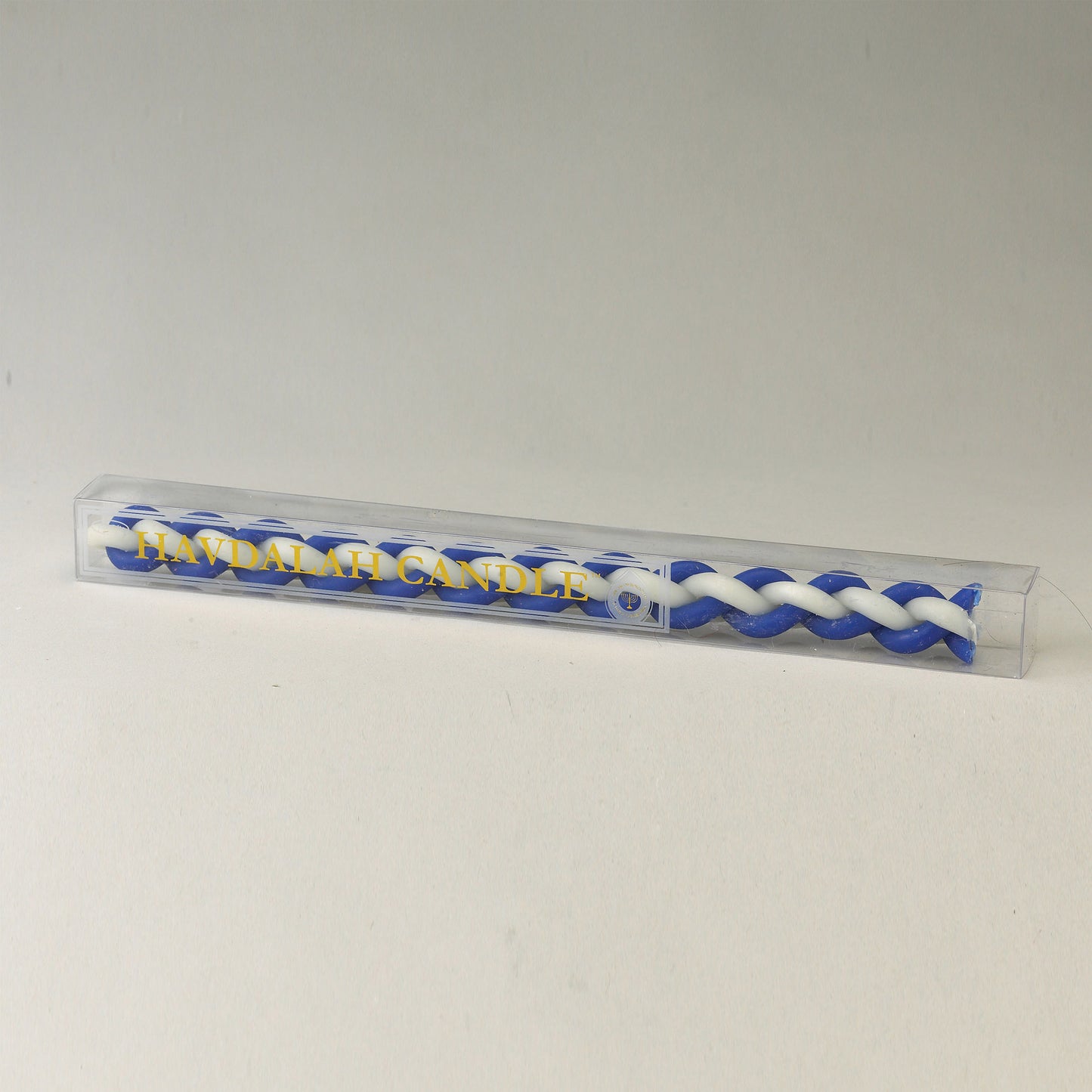 The Round Blue and White Braided Havdalah Candle is an essential item for concluding the Shabbat, offering both tradition and functionality. Its classic design not only enhances the aesthetic of your Havdalah ceremony but also ensures a reliable flame that lasts for many weeks, making it a practical choice for regular use.