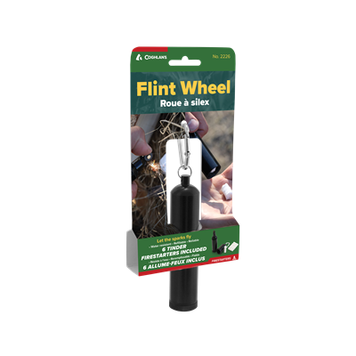 For reliable fire starting, Coghlan's Flint wheel provides an all-in-one kit, contained in a single, sleek aluminum capsule. This kit offers a convenient way to spark and ignite the included paraffin and cotton tinder, or various other firestarters with a simple and quick, one-handed operation.