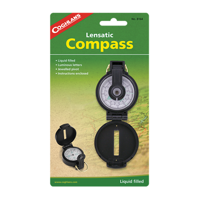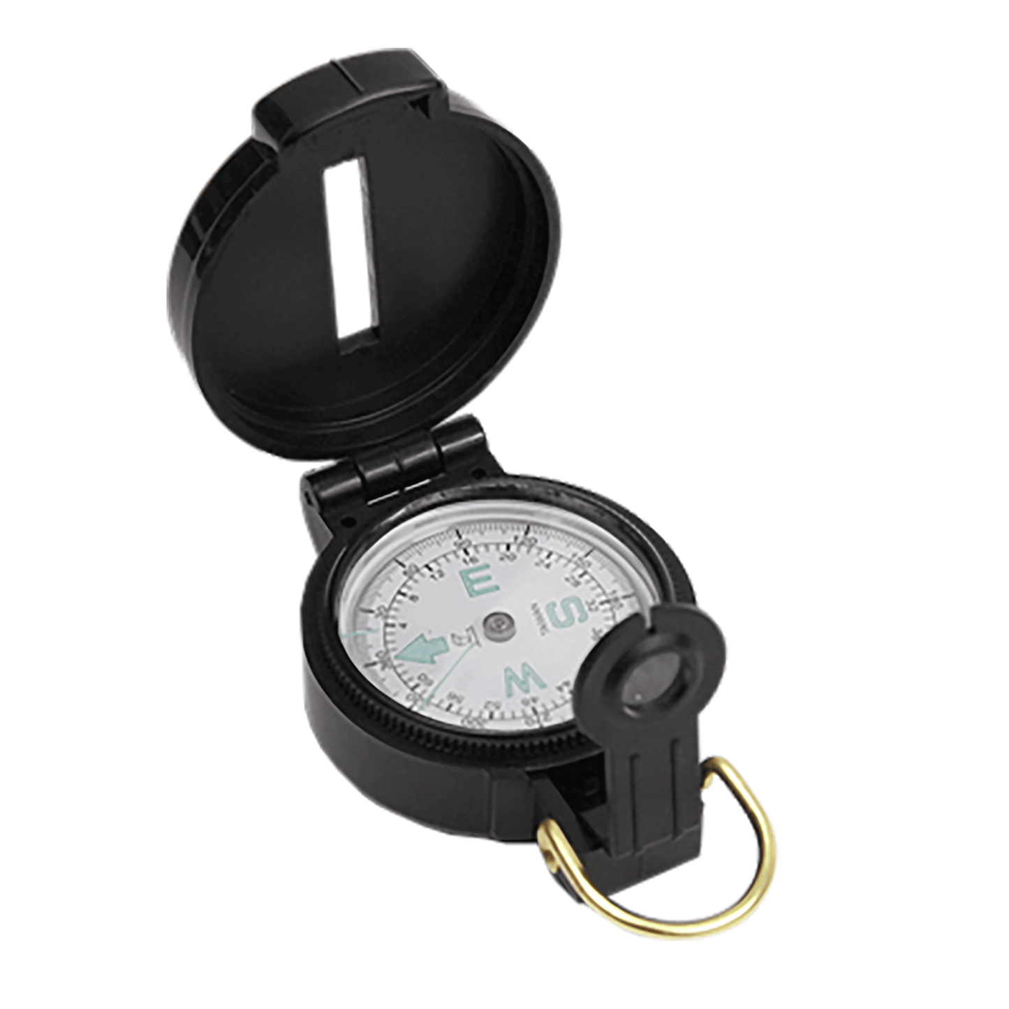 The Lensatic Compass is ideal for explorers who like using landmarks for long-distance navigation. This liquid-filled compass features luminous direction markers, a sturdy plastic case, and a magnified sight lens.