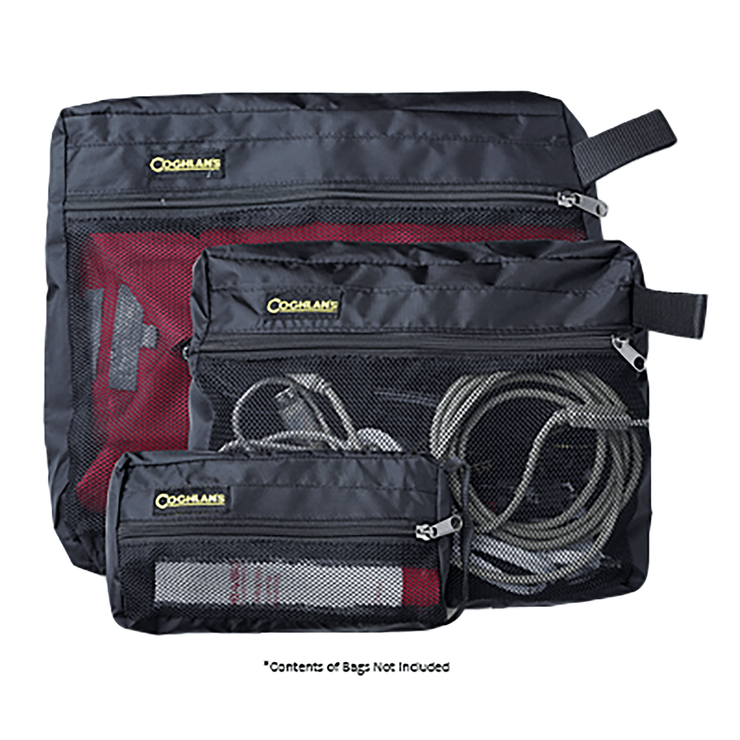 Ideal for keeping your camping gear and personal items neatly sorted, this set includes three bags in different sizes. The slim profile, mesh front, and zippered access make these bags a great option for those who want to find small and easy-to-lose items quickly.