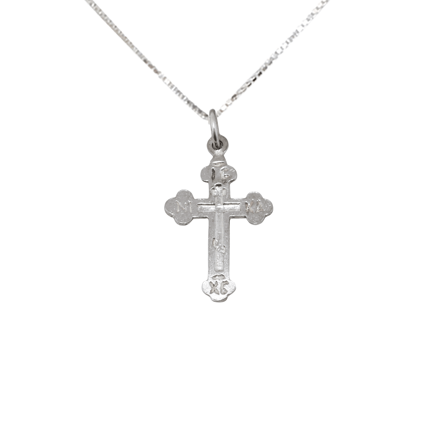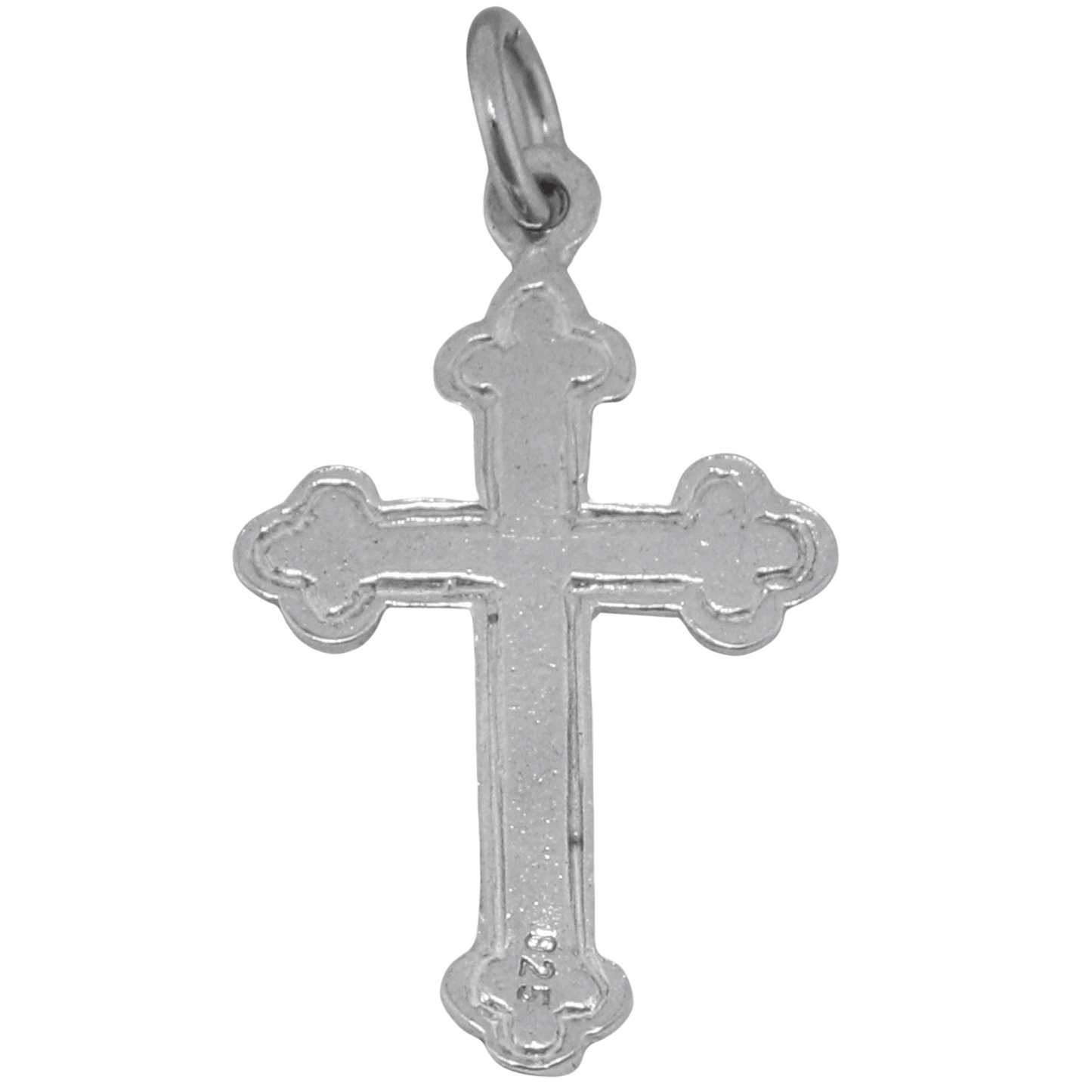 This cross pendant is made from sterling silver, it features a classic budded cross design, characterized by its arms that gracefully taper into three rounded ends, reminiscent of blossoming buds. The simplicity of the design brings an understated elegance, while the sterling silver material adds a touch of brilliance.