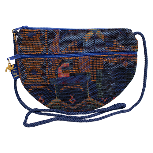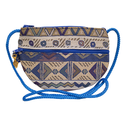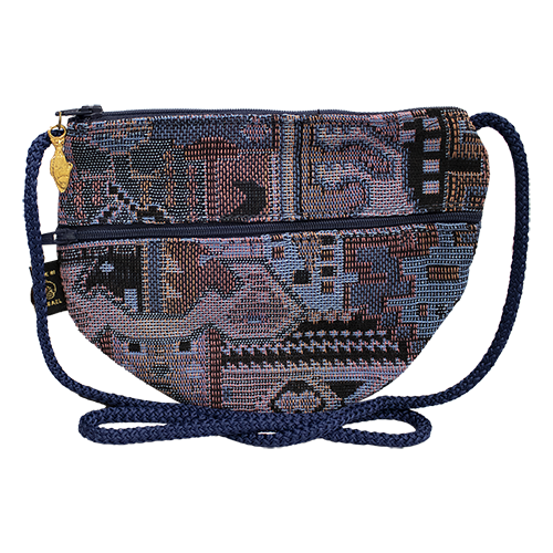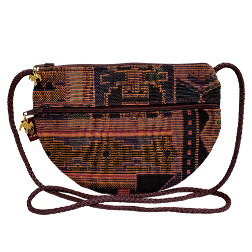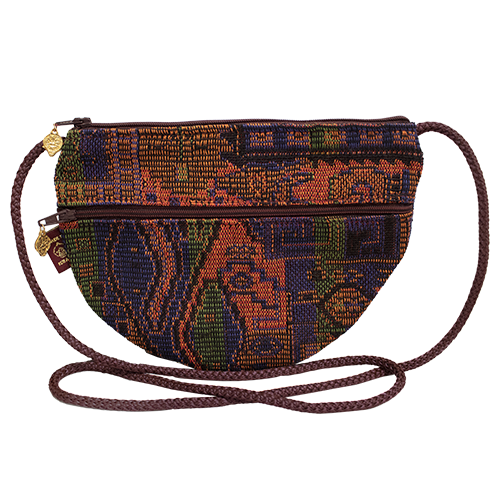 This small bag is just that small accent you need when you don't want to carry a lot with you. This smartly designed purse is in the shape of a 3/4 circle and has two separate zippered compartments.