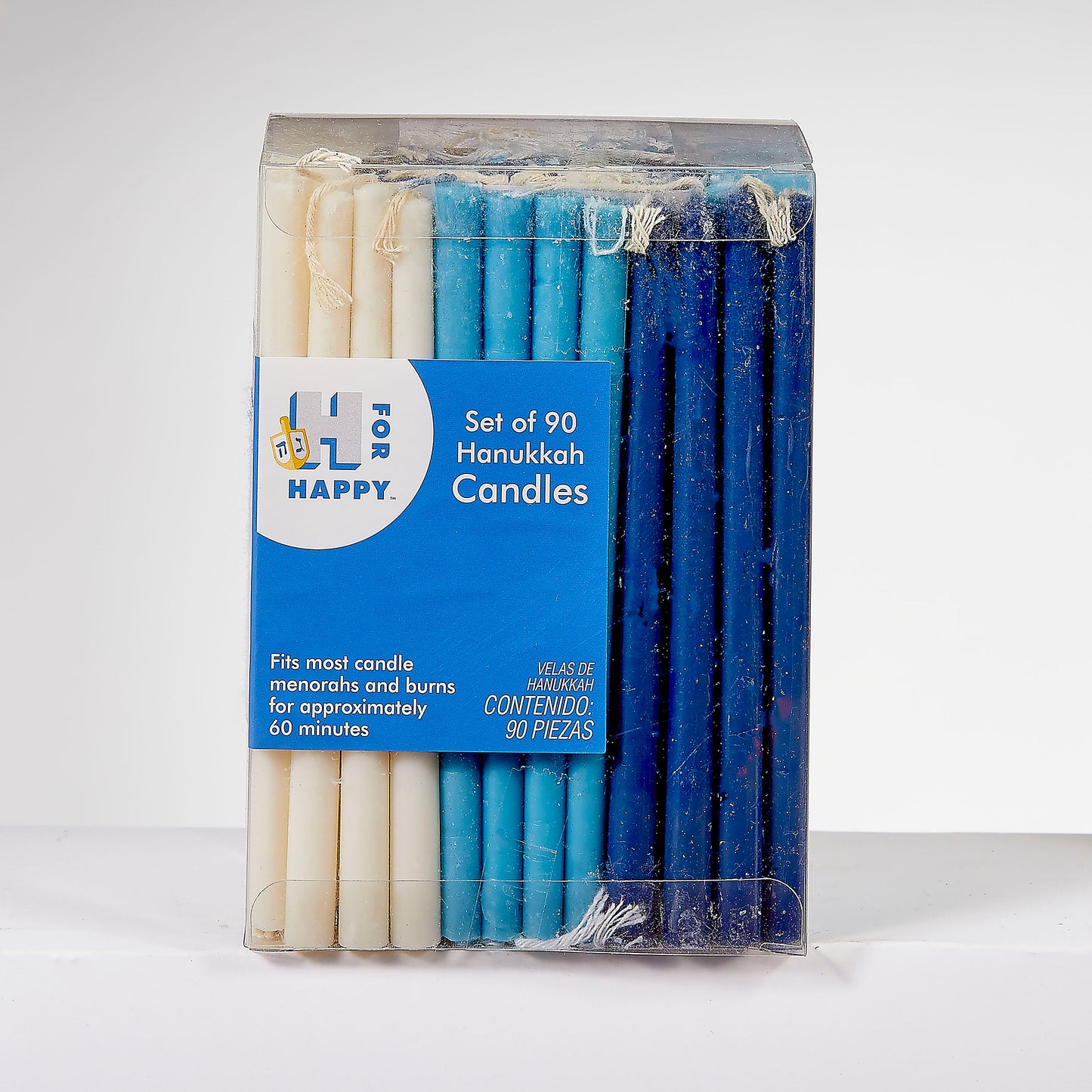 - 90 Deluxe Blue/White candles, Enough for 2 Family Members to Light All 8 Nights of Chanukah!