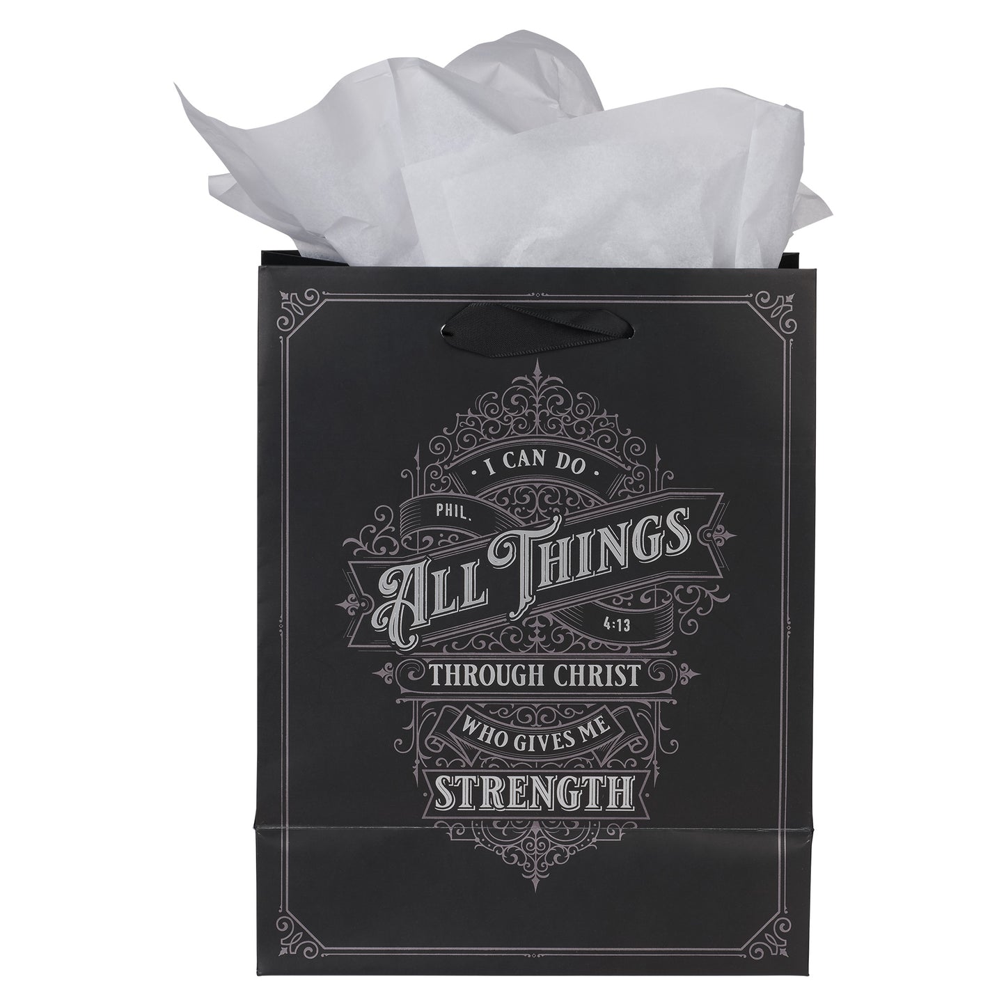 Through Christ Black and Silver Medium Gift Bag - Philippians 4:13
