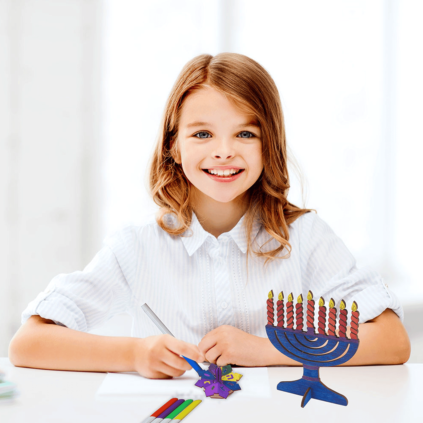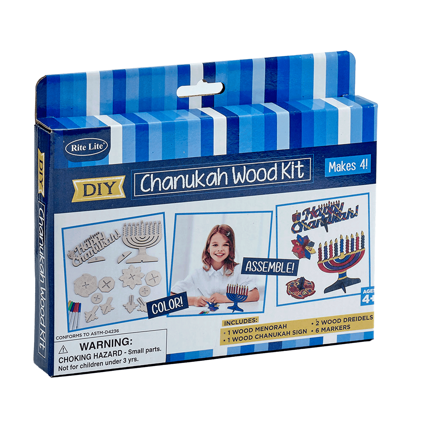 This DIY Chanukah Wood Kit is a great way to express your love for the holiday! This fun activity adds a touch of creativity and personalization to the celebration of the Festival of Lights. Color our classic Chanukah designs with the 6 included markers. Kids of all ages can enjoy the endless possible designs in this kit!