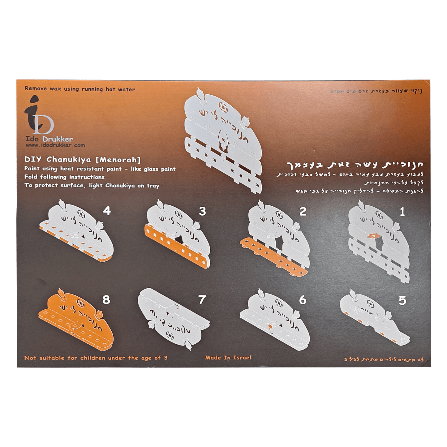 This amazing Chanukkiah is a paintable aluminum DIY Chanukkiah comes with assembly instructions in English as well as Hebrew. (*paint not included).