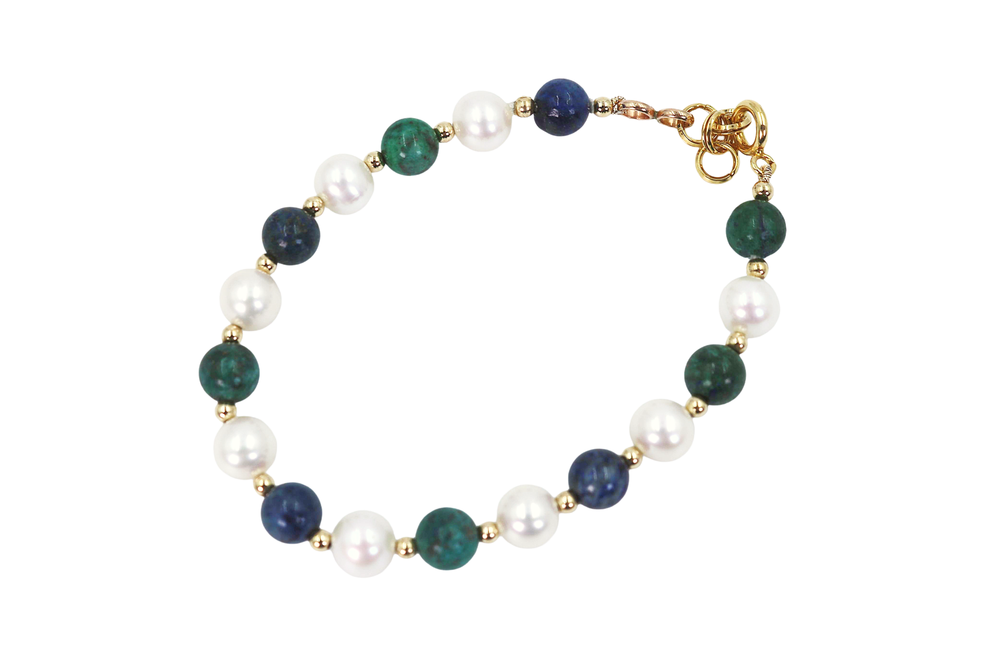 - Eilat Stone Beads, Freshwater pearls, gold-filled beads