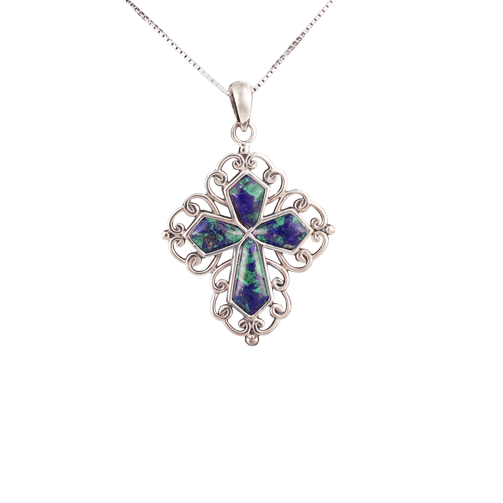 Eilat Stone & Silver Filigree Cross Pendant