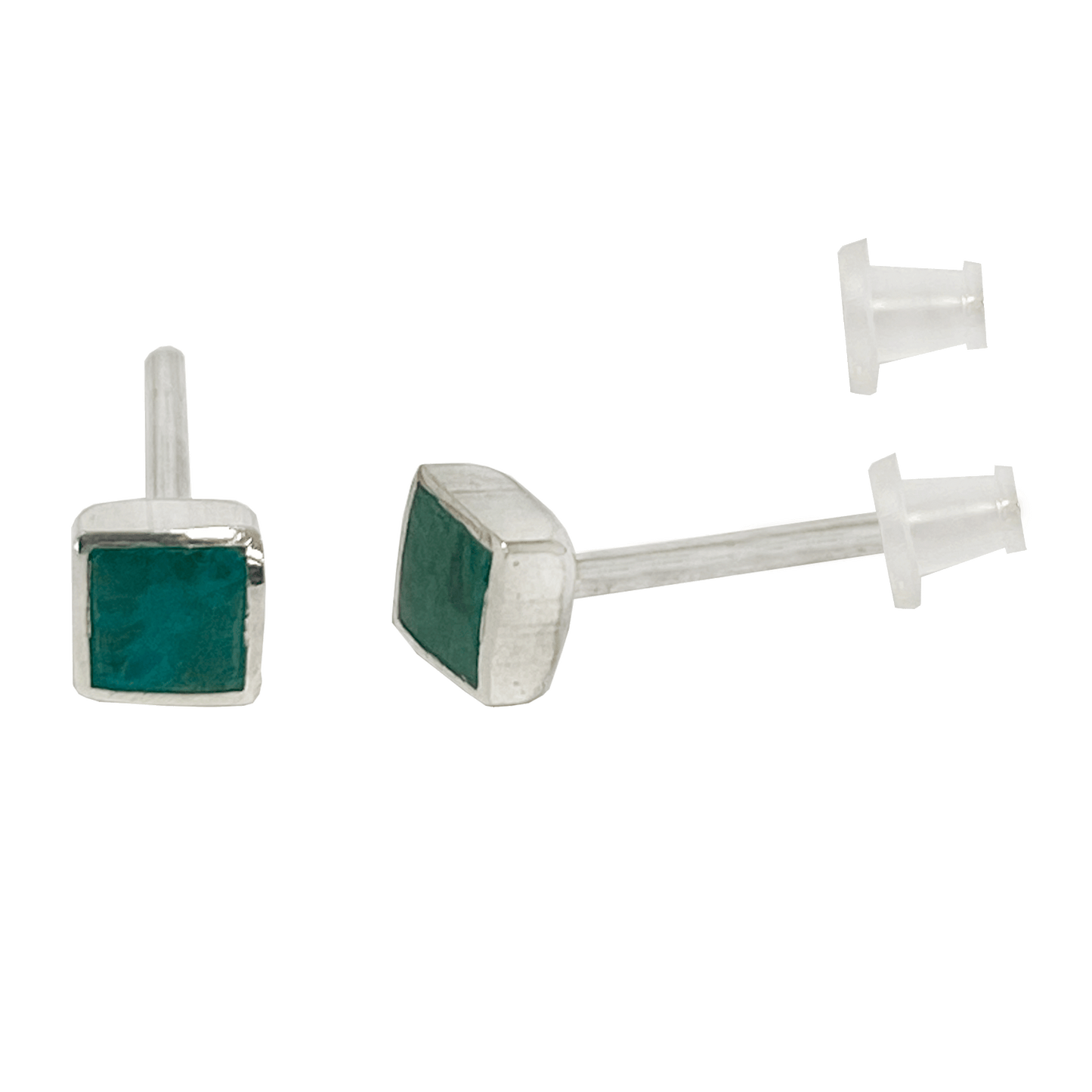 These extra small Eilat Stone stud earrings feature the captivating hues of the rare Eilat stone, cut into a delicate square shape. Set in polished sterling silver, the minimalist design enhances the natural beauty of the stones. Lightweight and subtle, these earrings offer a touch of elegance, perfect for everyday wear or adding a hint of color to any outfit.