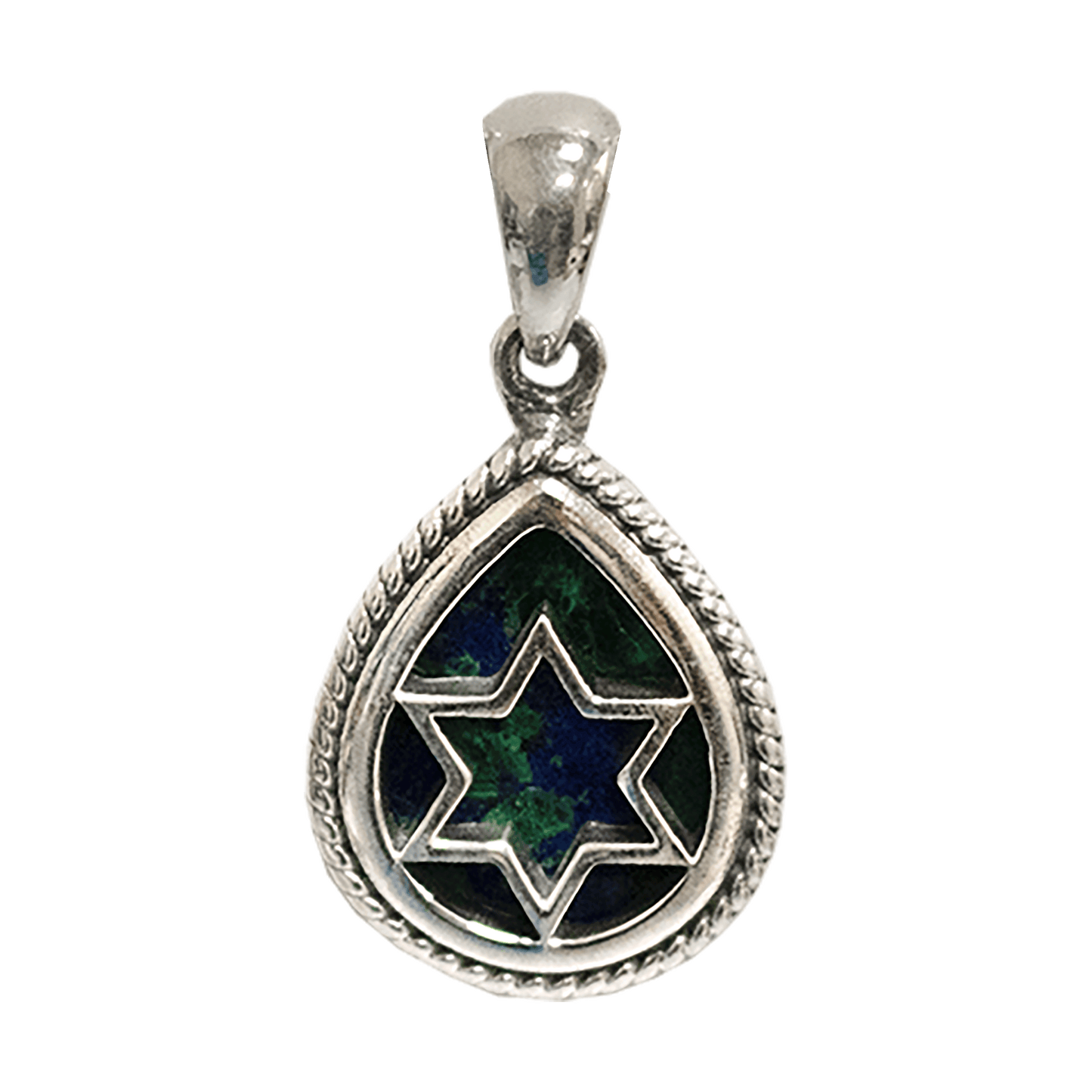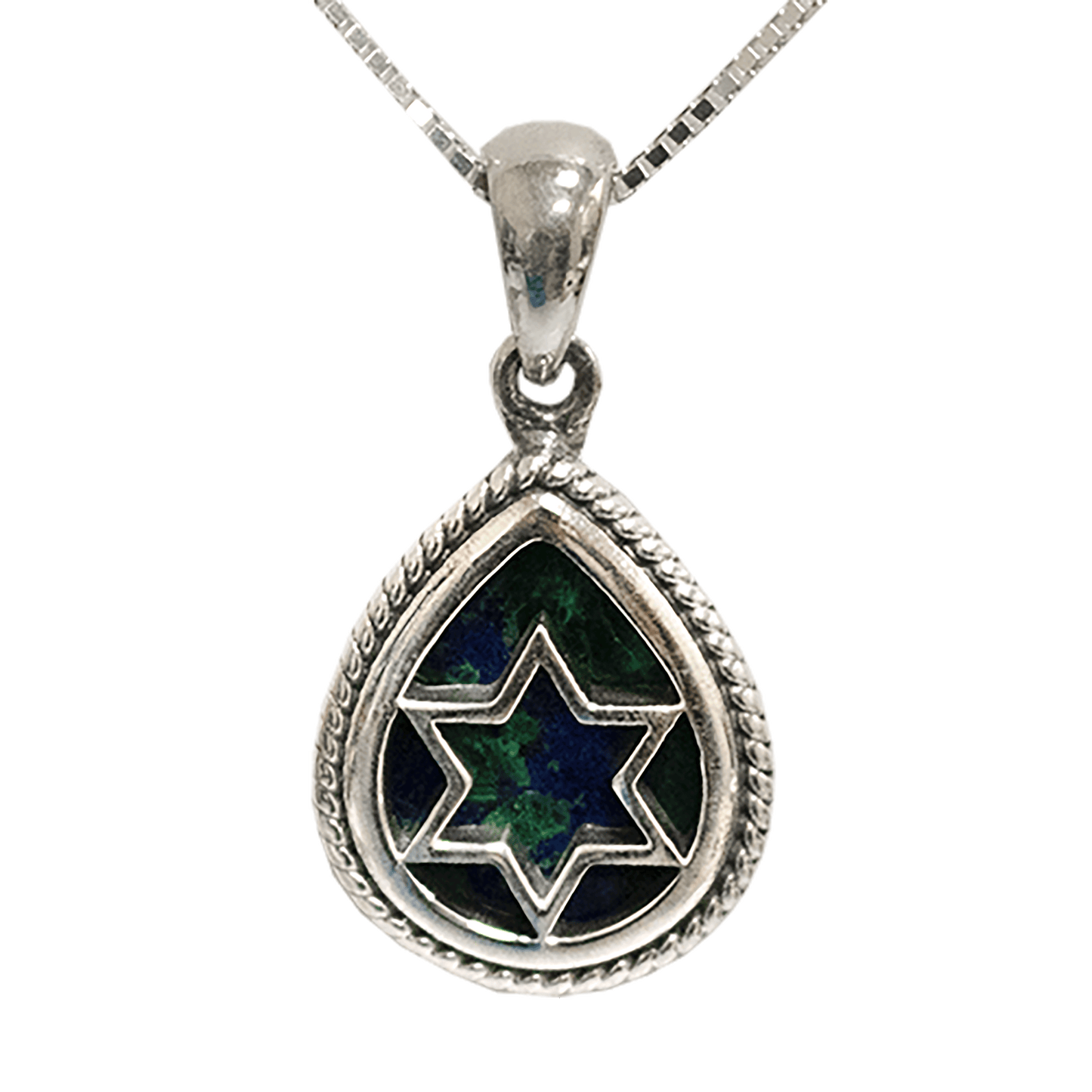 Whether you are dressing for a busy day at the office or for a fun night on the town, complete any ensemble with this lovely Eilat stone pendant necklace. This beautiful blue and green stone that is in a sterling silver frame that is overlaid with a Star of David.
