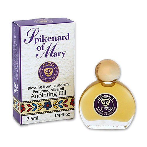 Spikenard of Mary anointing oil derives from the New Testament passage John 12:1-3 when Mary, sister of Lazarus anoints Jesus' feet with nard, "Six days before the Passover, Jesus came to Bethany, where Lazarus lived... Mary took about a pint of pure nard, an expensive perfume; she poured it on Jesus’ feet and wiped his feet with her hair. And the house was filled with the fragrance of the perfume."