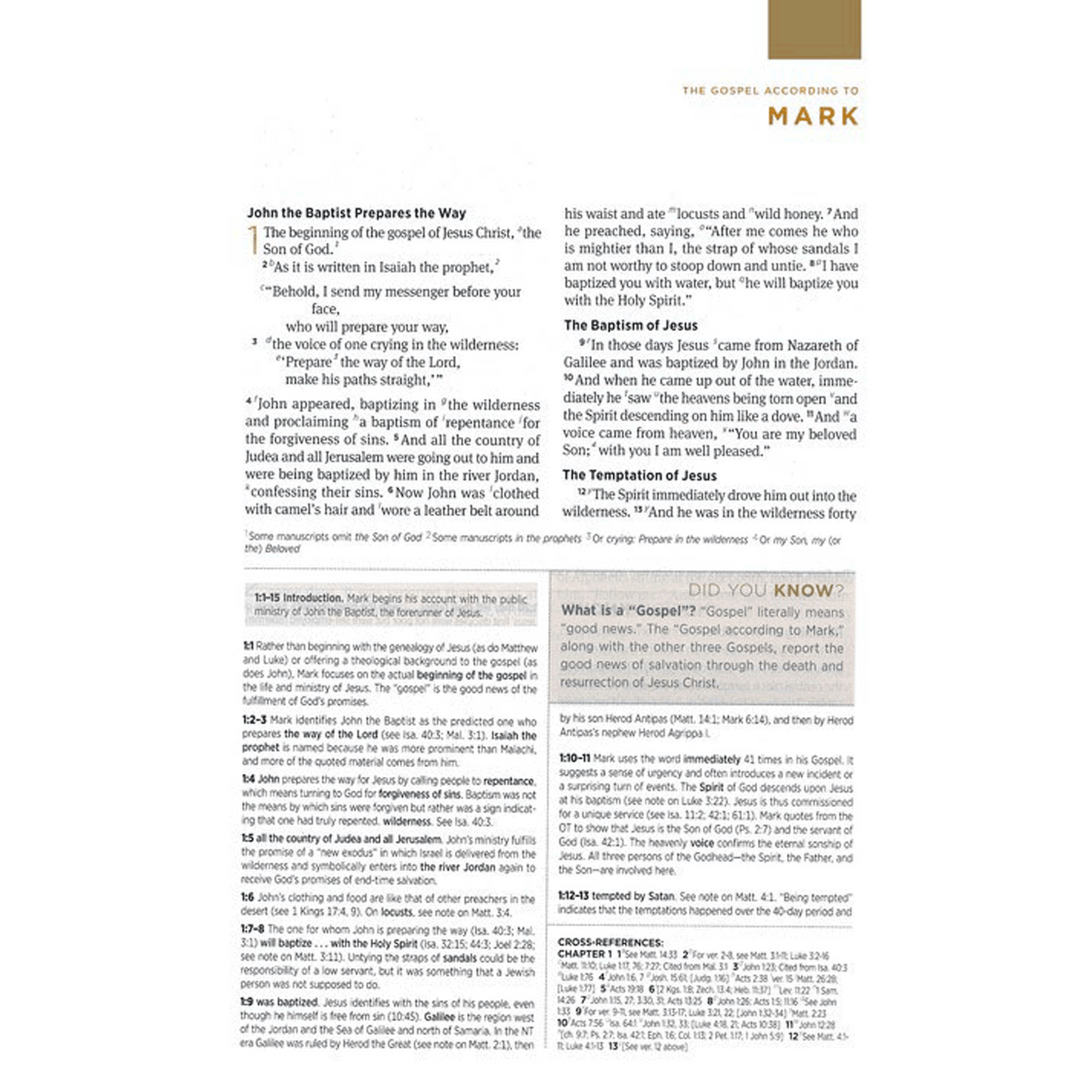 With clear, concise study notes, the ESV Student Study Bible provides many features—including nearly 900 “Did You Know?” facts, 120 Bible character profiles, and topical articles. It also features a glossary of key terms, more than 80 maps and illustrations, extensive concordance, and 80,000 cross-references. These as well as other features make it the most comprehensive and content-rich student Bible available today.