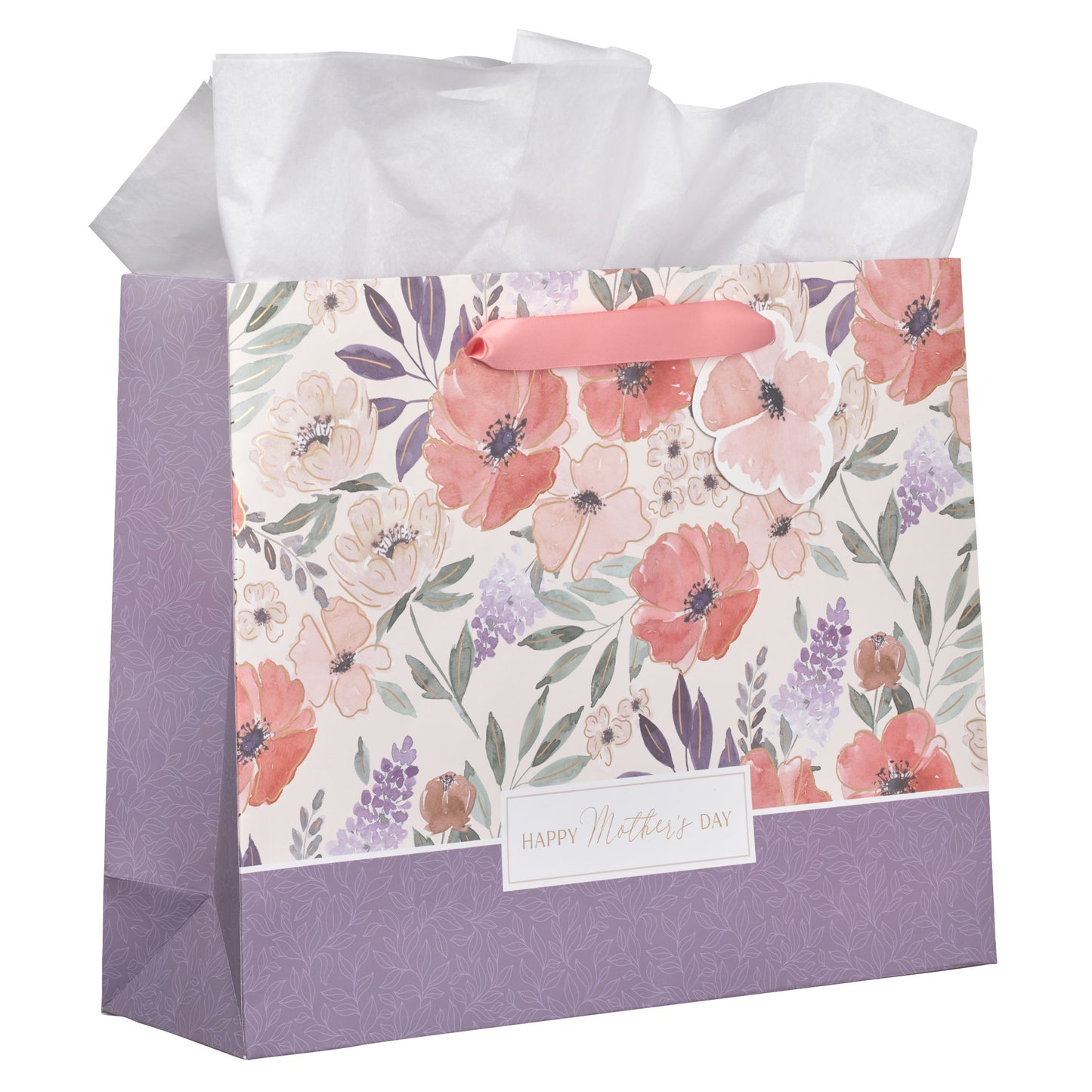 Wrap up your love and appreciation for your mom with a gift nestled in the Happy Mother's Day Coral Poppy Large Landscape Gift Bag. This beautiful gift bag will complement your thoughtful present, ensuring she feels the love and care you've put into her special day.