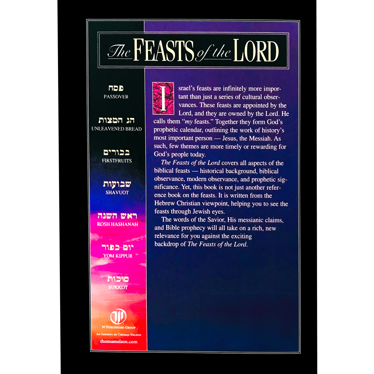 Written with Christian and Jewish audiences in mind, The Feasts of the Lord takes the reader through all the holy days of Israel. These feasts are infinitely more important than just a series of cultural observances. They are appointed by the Lord, and they form God's prophetic calendar, outlining the work of history's most important person...Jesus, the Messiah. As such, few themes are more timely or rewarding for God's people today.