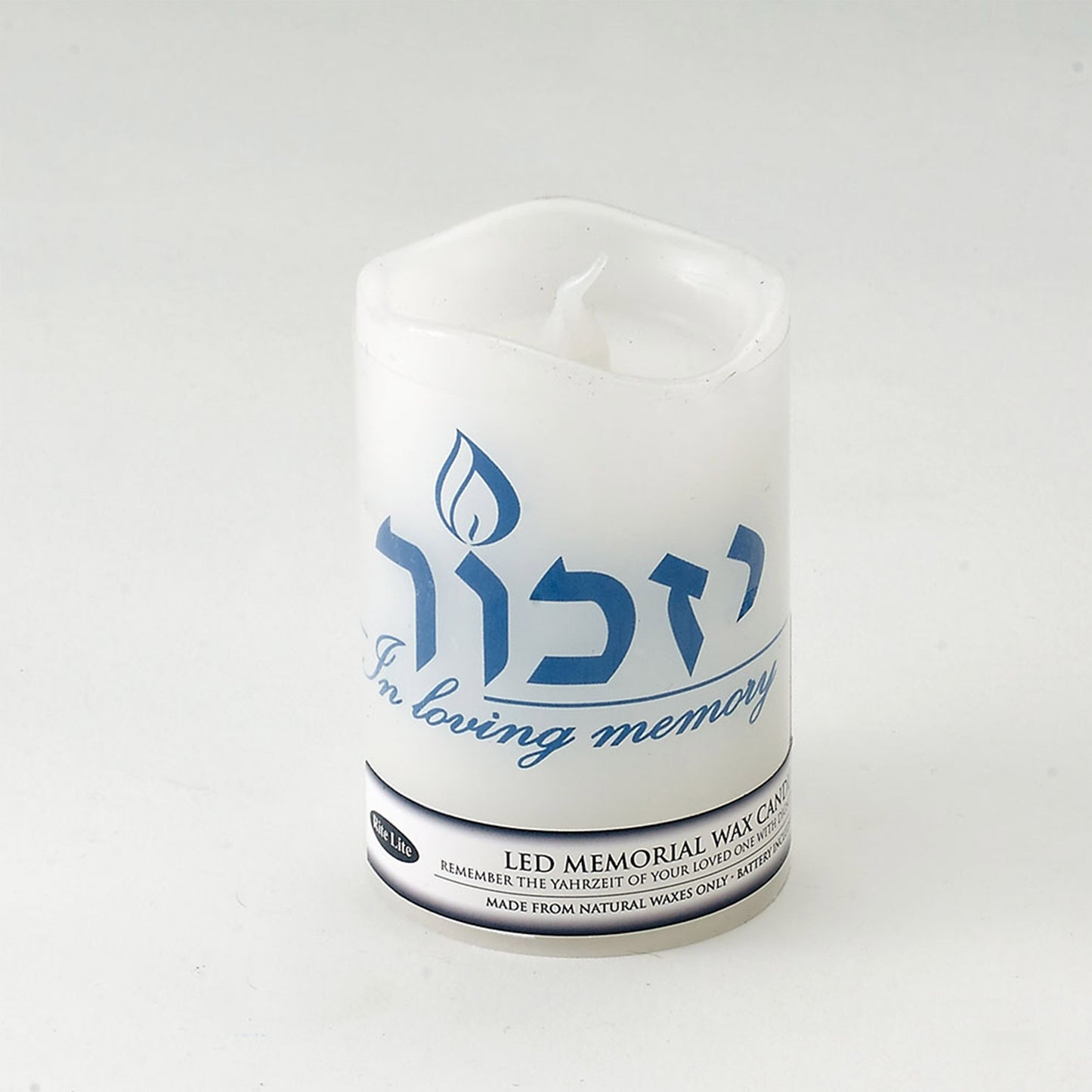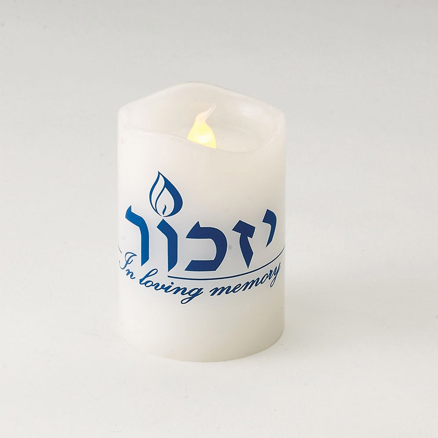 Honor the memory of your loved ones with this LED Flameless Yizkor candle - perfect for times when a candle cannot be used. The flickering flame provides a realistic visual of a real flame. Powered by an included battery for long lasting use!