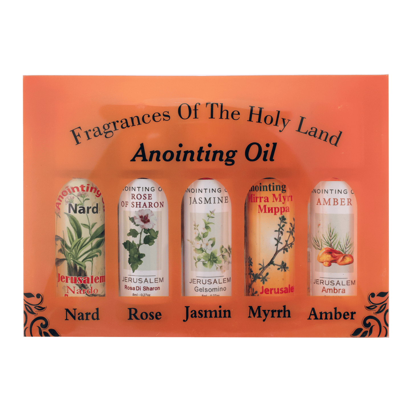 This set of aromatic oils from the Holy Land includes Nard, Rose of Sharon, Jasmin, Myrrh and Amber. From the myrrh He was given at His birth, to the spikenard that scented His final days on earth this is the perfect set.