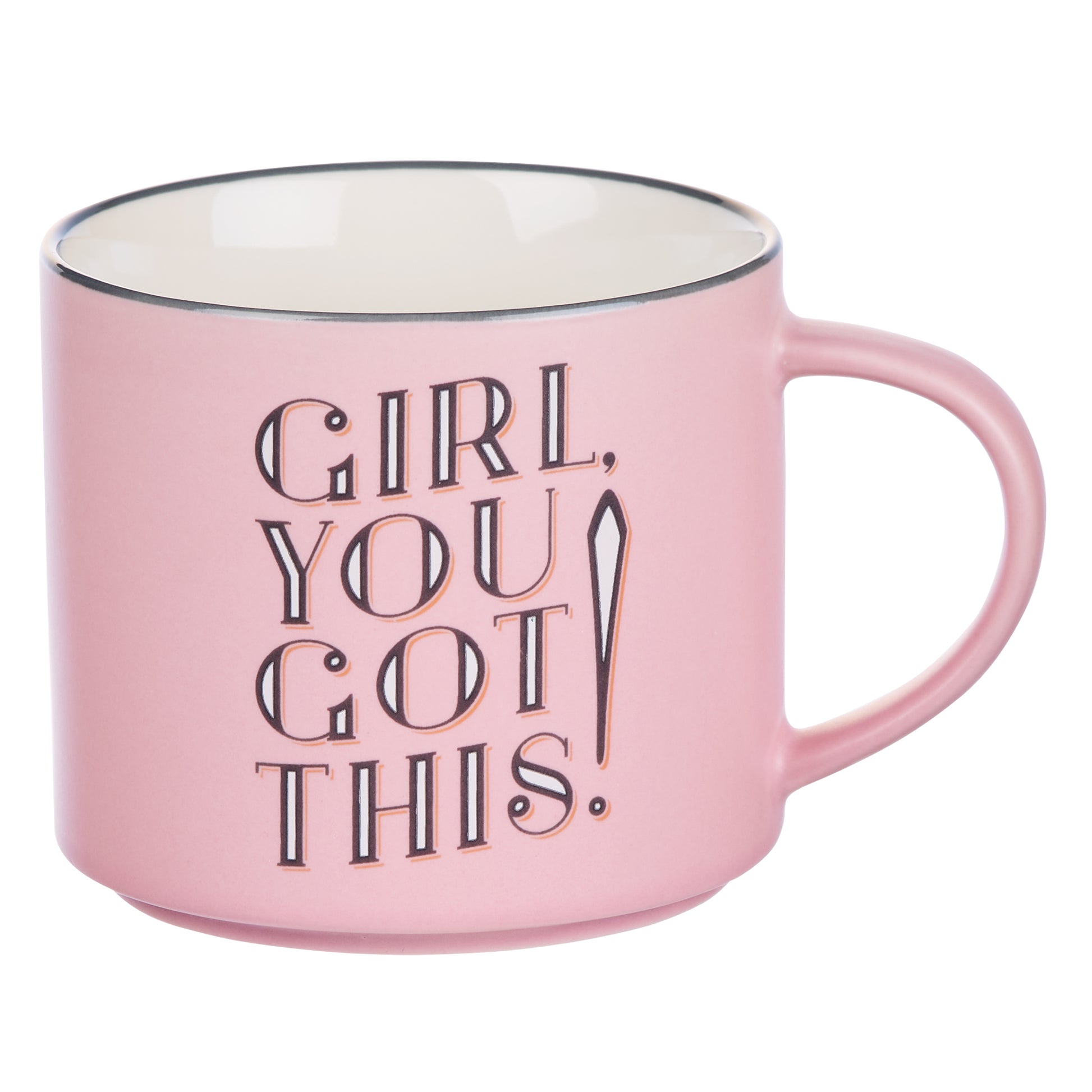 Our Girl, You Got This! Ceramic Coffee Mug brings some get-up-and-go to your morning. Pour your coffee in this pink mug and keep it coming! Almost as good as "can't never could," this mug will remind you that where there's a will, there's away.