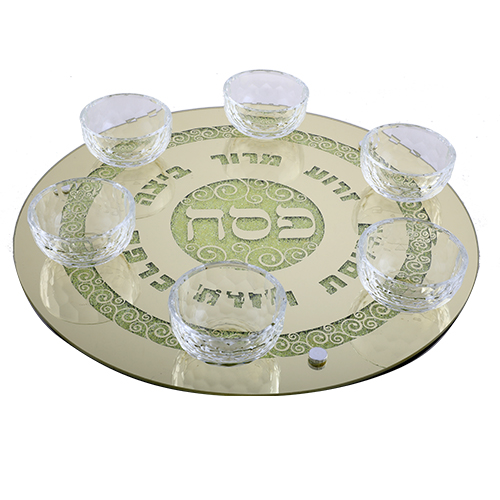 Modern elegance is brought to your table with this unique Seder plate. Sleek and practical in design, this glass and wood Seder plate shows a beautiful gold finish that shines through the glass with six attached glass bowls. it has a glamorous look and adds a contemporary style to your Passover table.