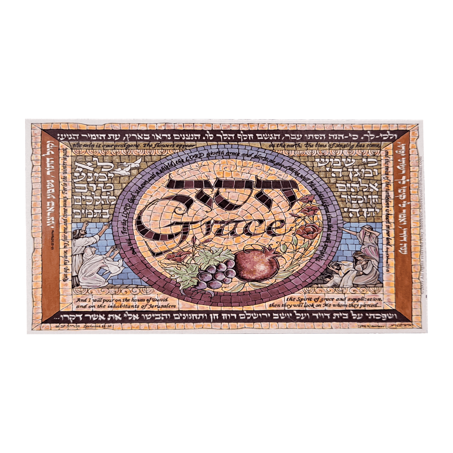 A beautifully crafted magnet by Israeli artist Amy Shetreet, featuring the word "Grace" elegantly displayed in both English and Hebrew. The design showcases her signature vibrant colors and mosaic patterns, making it a meaningful and artistic addition to any space.