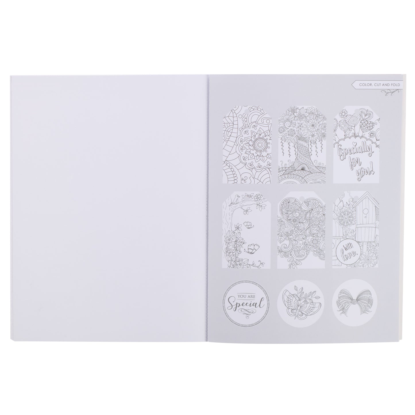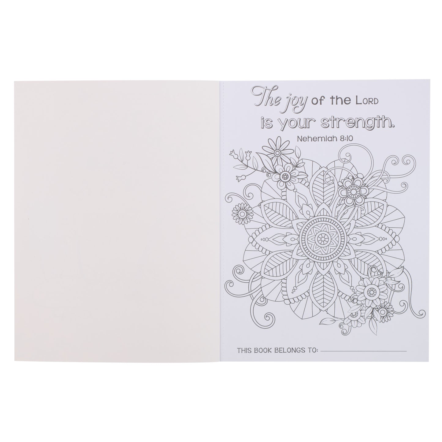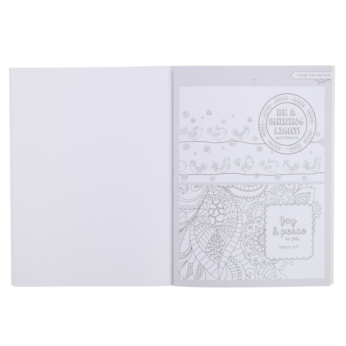 The one-color interior pages feature line drawings of select Scripture verses designed to bring joy and comfort to your heart. In addition to the line drawings there are 6 bookmarks, 8 small and 6 large cards to color, cut out, and share. Use your favorite pencils, gel pens, or paint to color the designs on the perforated pages and then tear them out and display them in a special place.