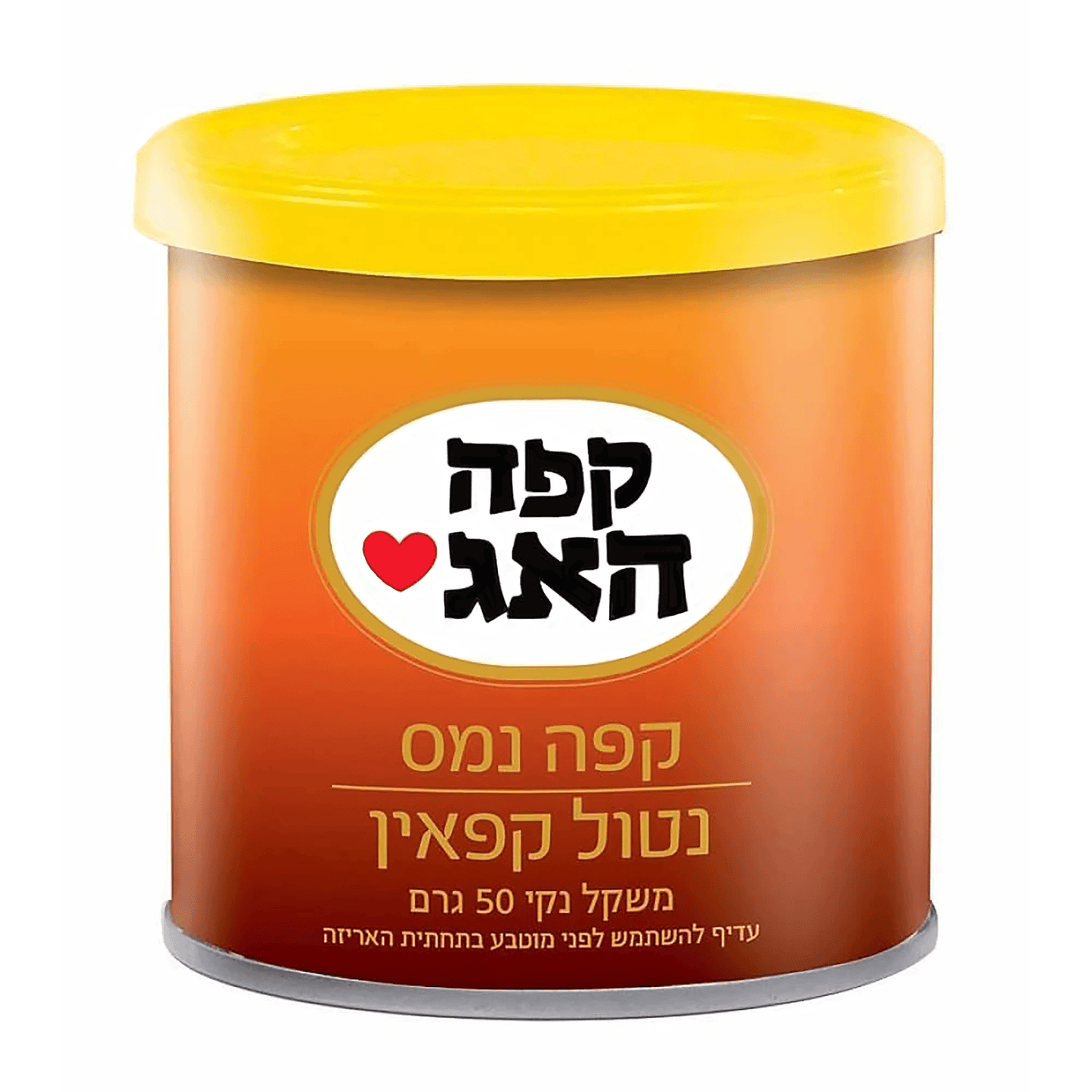 Decaffeinated Instant Coffee. Israeli decaf with a full bodied, rich flavor which is achieved through a precise roasting process using only selected coffee beans.