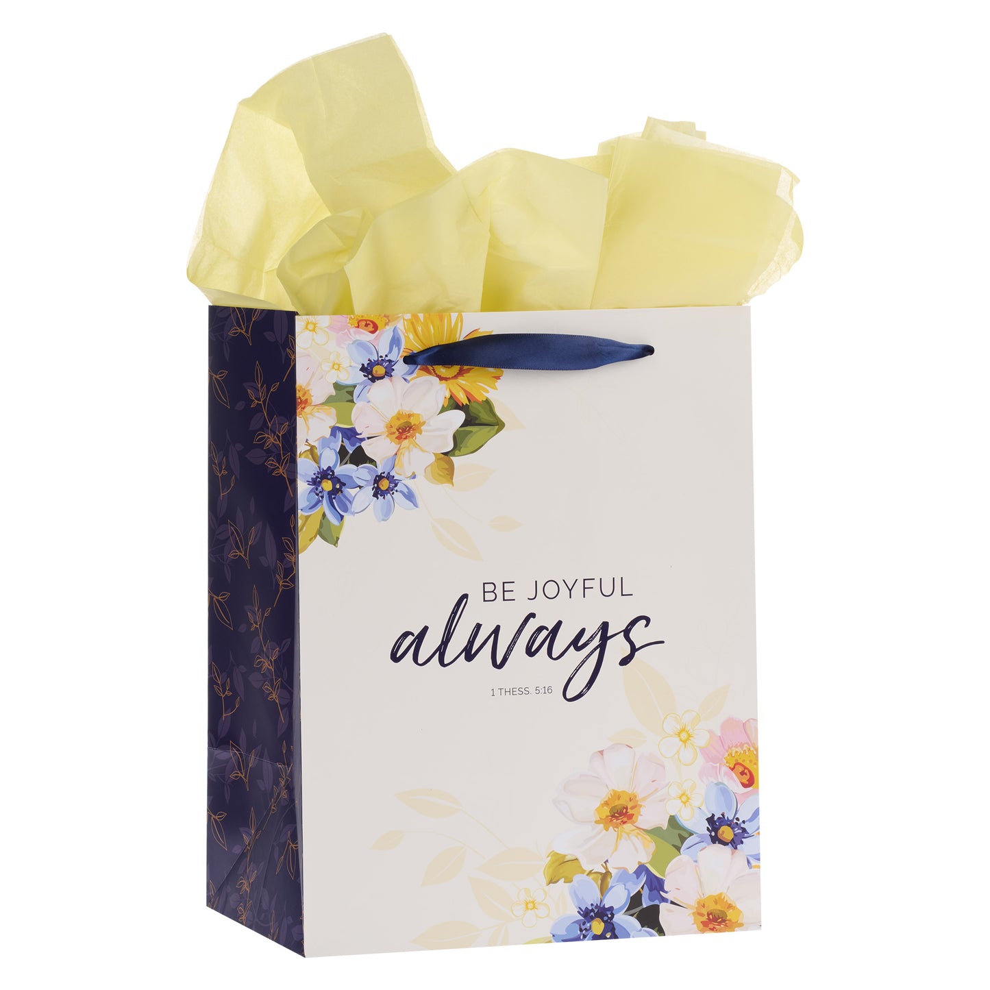 Be Joyful Always Yellow and Navy Blue Floral Portrait Gift Bag with Card Set – 1 Thessalonians 5:16
