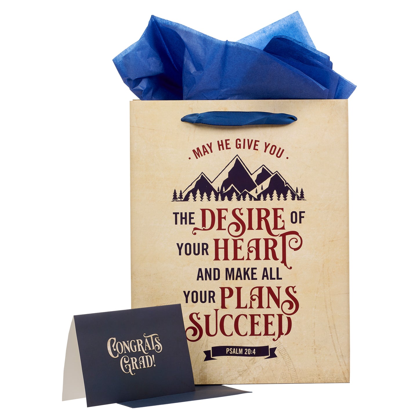 Desires of Your Heart Large Portrait Gift Bag with Card Set - Psalm 20:4