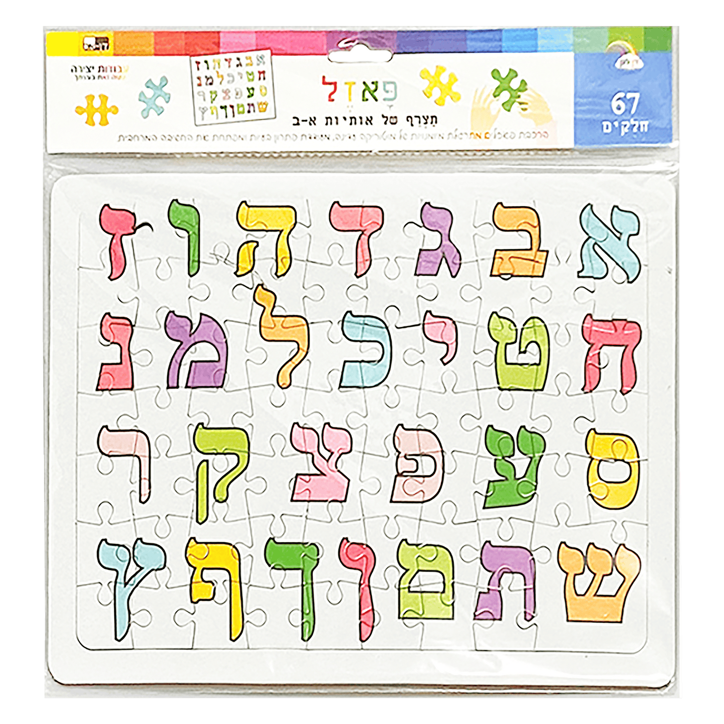 This 67-piece puzzle features the Hebrew alphabet, with each letter showcased in vibrant colors against a crisp white background. Measuring 28cm x 21cm, this puzzle is both educational and fun, making it perfect for learning and play. The colorful letters help children and adults alike familiarize themselves with the Hebrew alphabet in an engaging way. Whether you're introducing someone to Hebrew for the first time or simply enjoying a relaxing activity, this puzzle is a delightful way to explore the beauty of the Hebrew language.