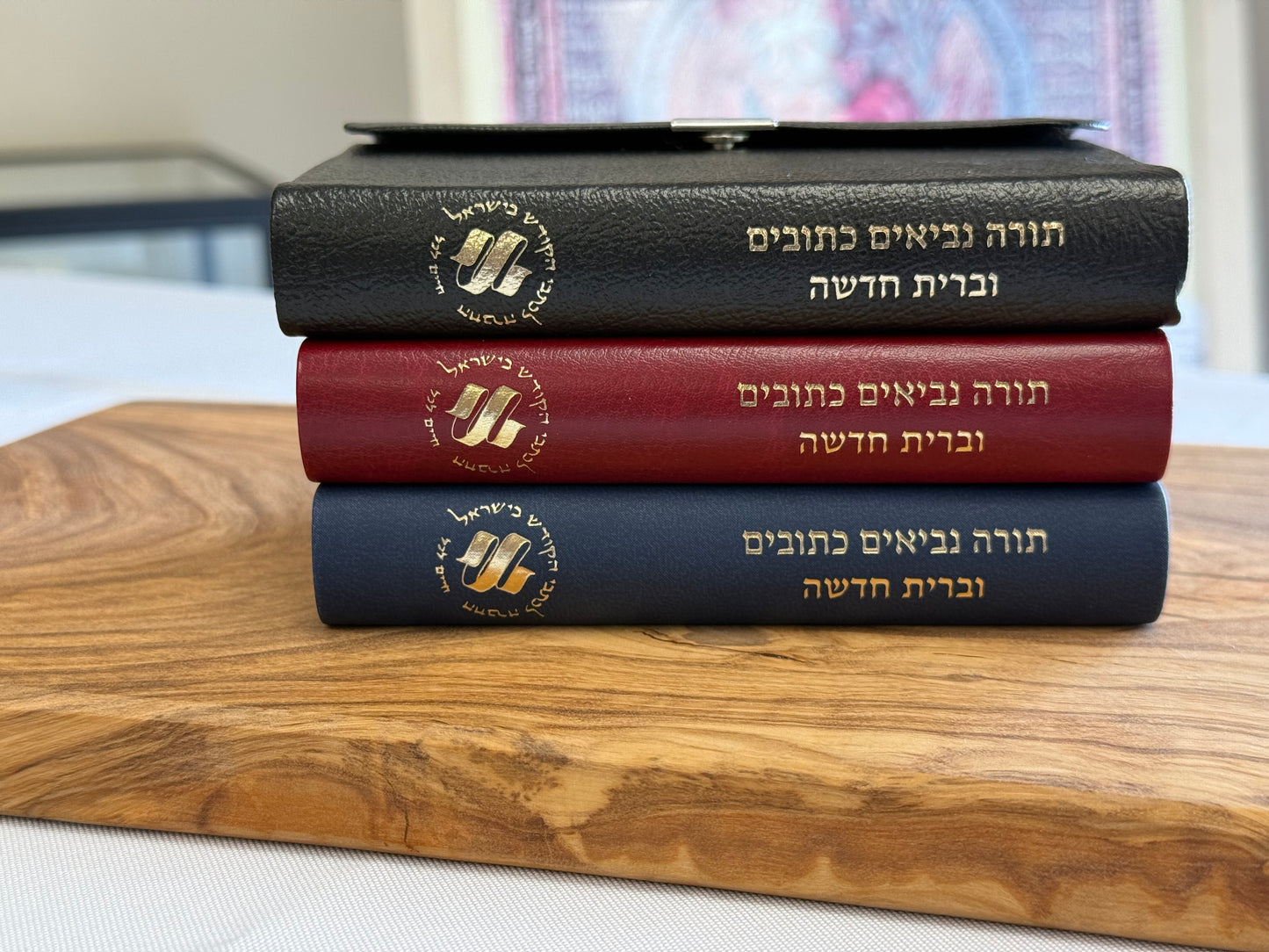 This small Full Hebrew Bible (Old and New Testaments) “pocket size” yet very readable available in various colors and covers.