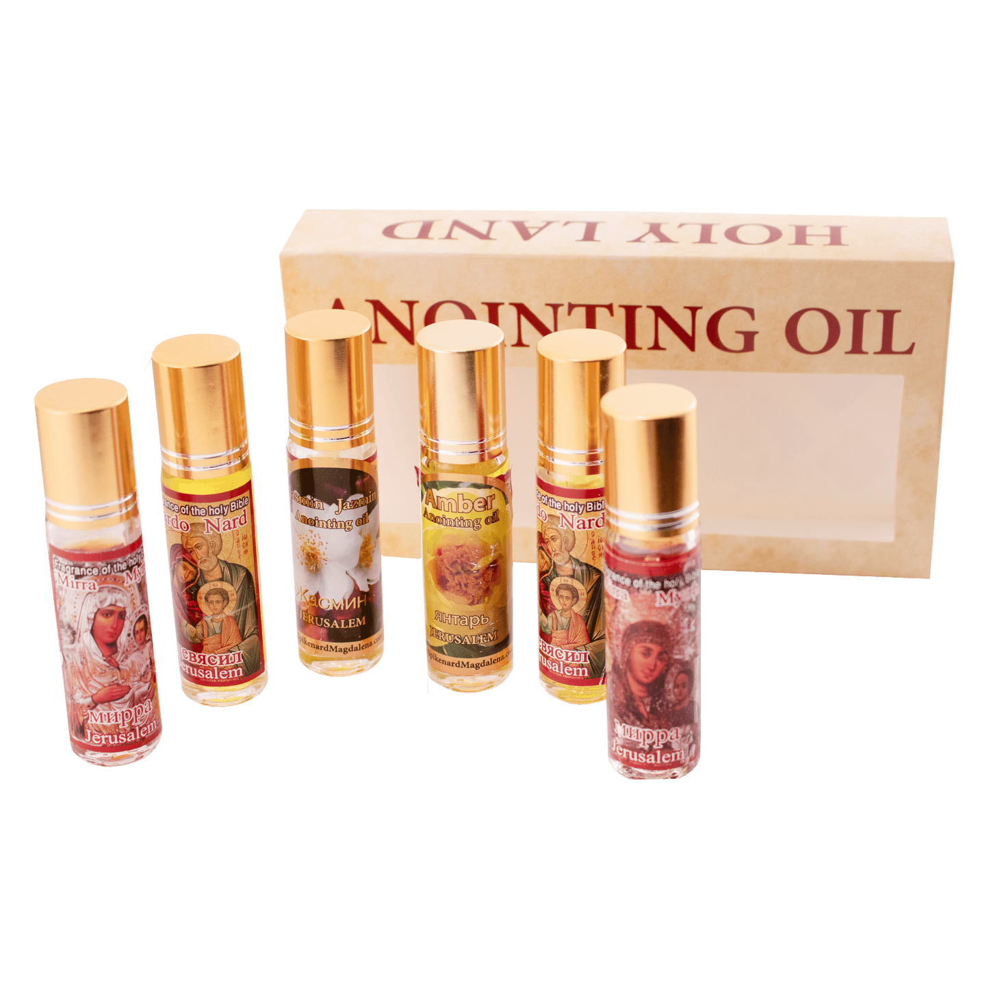 This set of aromatic oils from the Holy Land includes two Myrrh, Jasmin, Amber, and two Nard. From the myrrh He was given at His birth, to the spikenard that scented His final days on earth, this is the perfect set.